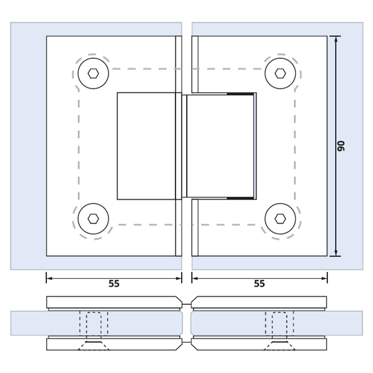 Deze Goudkleur glasscharnier wordt per twee stuks geleverd. Met deze glasscharnier kunt u een D1, D2 of DZ1 aan sluiten op een W2.