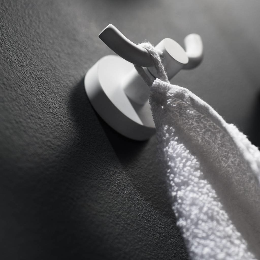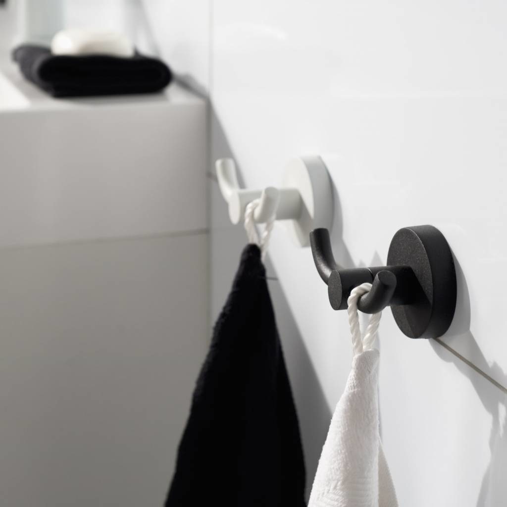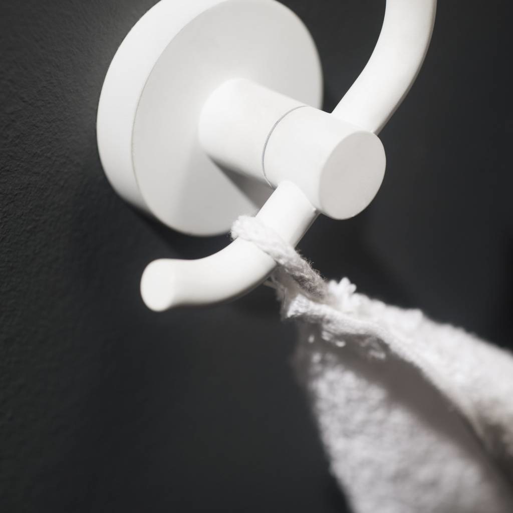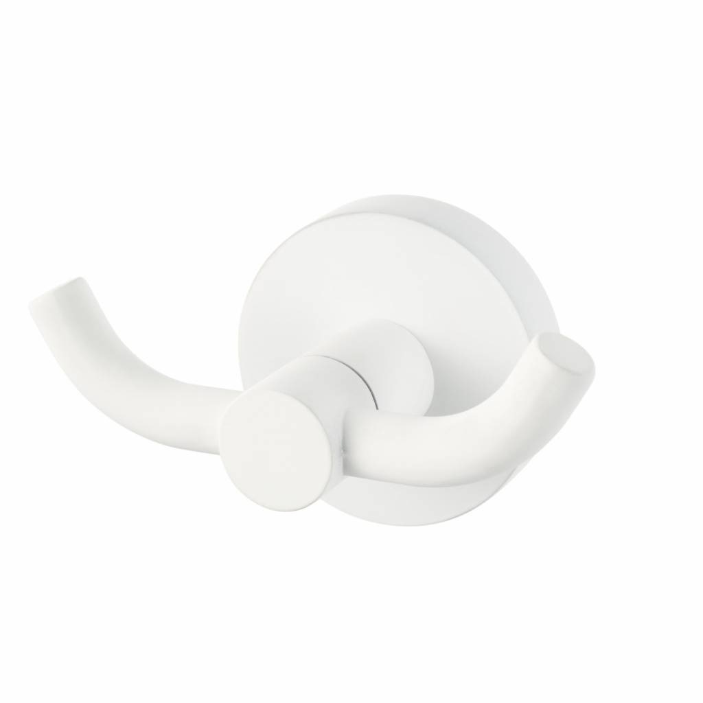 Handige dubbele haak die werkelijk overal in huis te gebruiken is. Van toilet tot kast of badkamer. De haak is licht gebogen,daardoor blijft alles er netjes aan hangen.