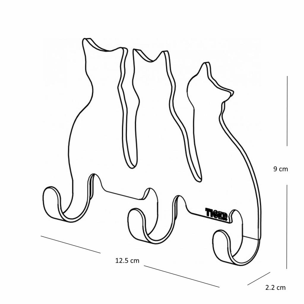 Dit haakje is van het merk Tiger, uit de serie Cats. Dit speelse Cats hakenrekje is naast een praktisch ophangsysteem ook een leuke accessoire voor aan de wand. Het hakenrekje is voorzien van drie haken en is uitgevoerd in zwart metaal. Het speelse design is leuk voor in de kinderkamer of te gebruiken als kapstok in de hal zodat ook de kleinste kinderen hun jas zelf op kunnen hangen. Afmetingen: (b)12.5 x (d)2.2 x (h)9 cm.