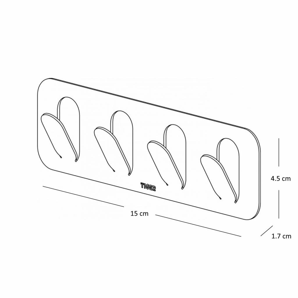 Deze Haak uit de serie Paperclip is van het merk Tiger. Deze multi haak is dankzij het strakke en simpele design eenvoudig te combineren in vrijwel iedere badkamer of keuken. De haak, ook dienend als kapstok, bestaat uit vier haken waardoor hij te gebruiken is voor meerdere handdoeken, theedoeken, sponzen en andere badkameraccessoires. Deze haak is ook te gebruiken als kapstok in de hal. Zo blijven deze ruimtes eenvoudig opgeruimd. Deze haak is gemaakt van RVS. De afmeting bedraagt (b)15 x (h)4.5 x (d)1.7 cm. Eenvoudig aan de muur te bevestigen door middel van een plakstrip; geen boormachine nodig!