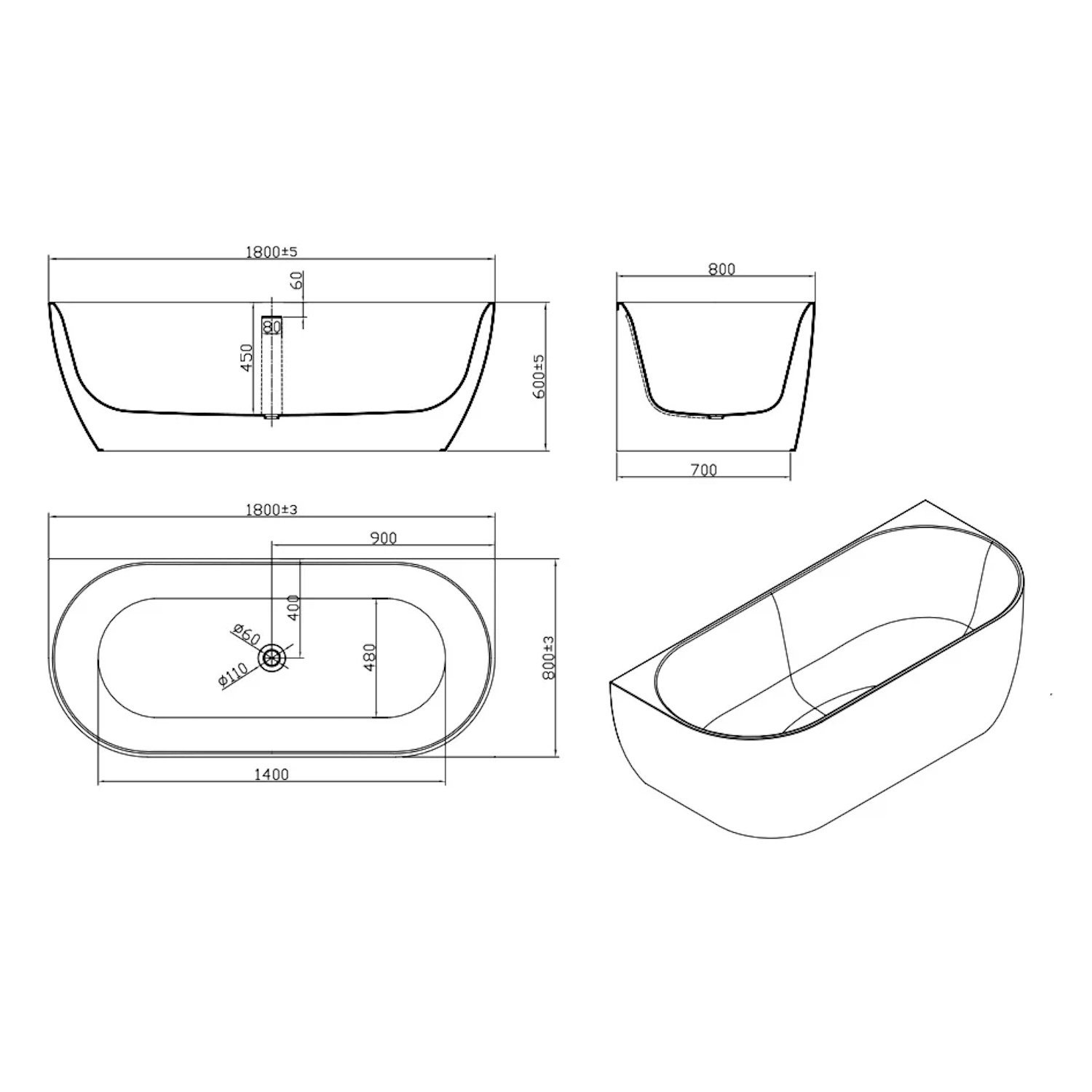 Het bad heeft een lengte van 180 cm, een hoogte van 80 cm en een breedte van 60 cm. Het Sanilux bad wordt geleverd met een aflsuitbare plug in de kleur wit.