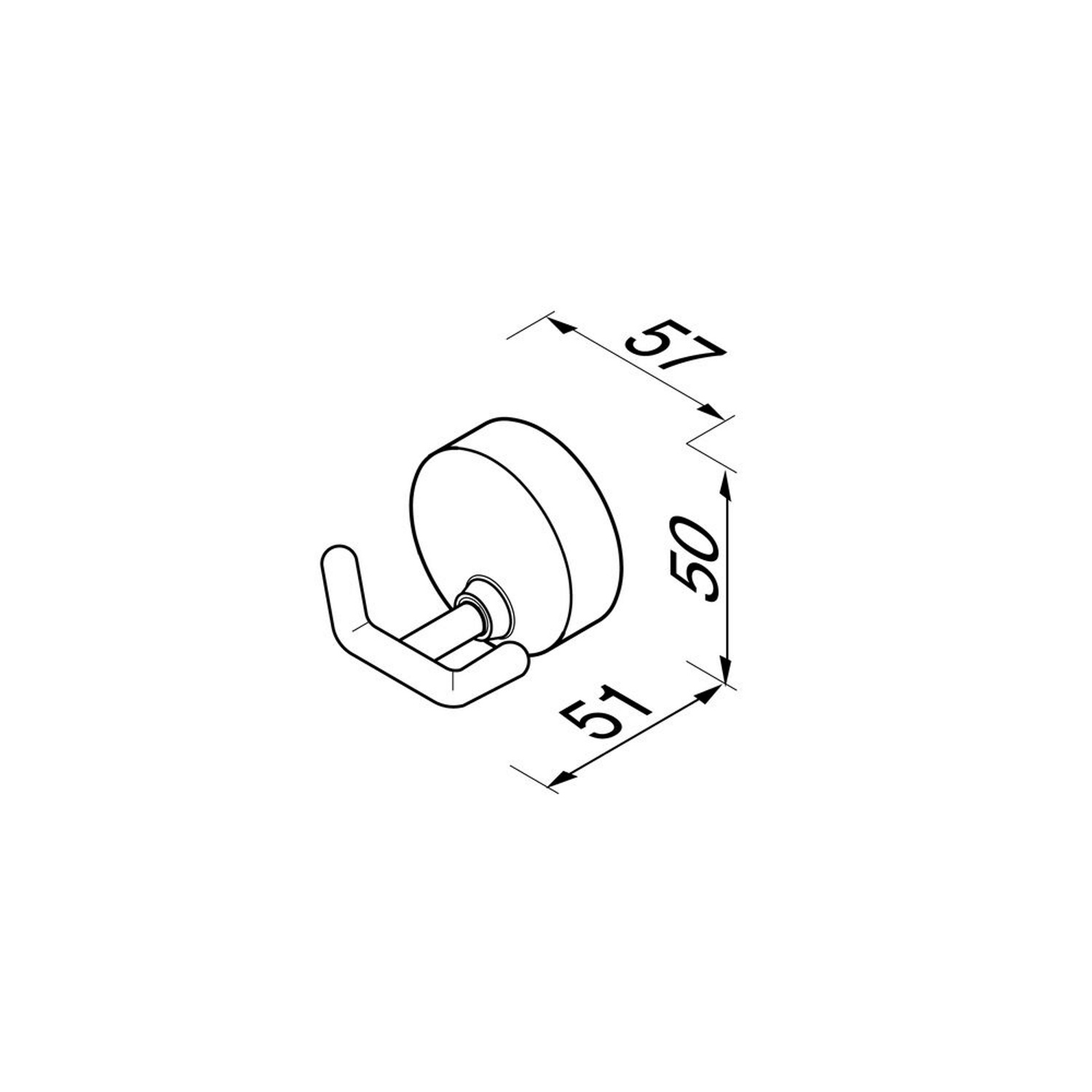 De handdoekhaak is 5,7 cm breed, 5,1 cm diep en 5 cm hoog.