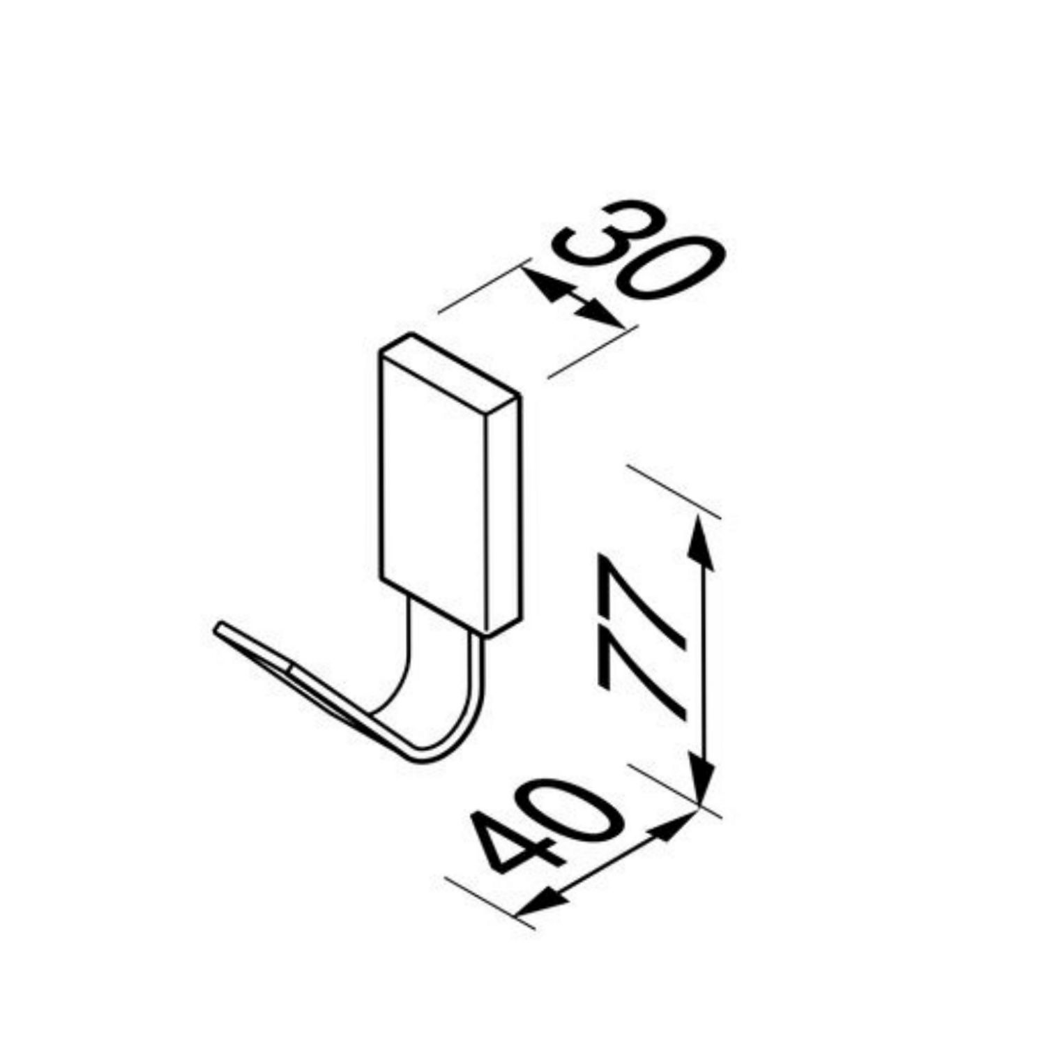 Het haakje is 7,7 cm hoog, 3 cm breed en 4 cm diep. Hij is van messing.