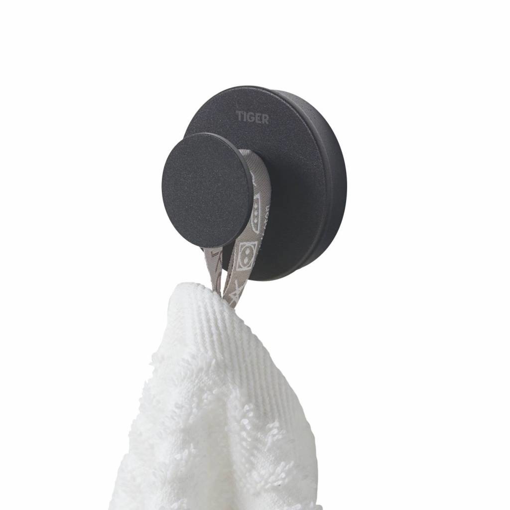 De haak is tevens geschikt voor montage met TigerFix type 1, waarmee accessoires snel en eenvoudig op een gladde, harde ondergrond te bevestigen zijn door middel van een gepatenteerd lijmsysteem. Boren is niet noodzakelijk en de accessoires zijn eenvoudig te verwijderen zonder dat er resten op de ondergrond achterblijven. TigerFix is los verkrijgbaar.