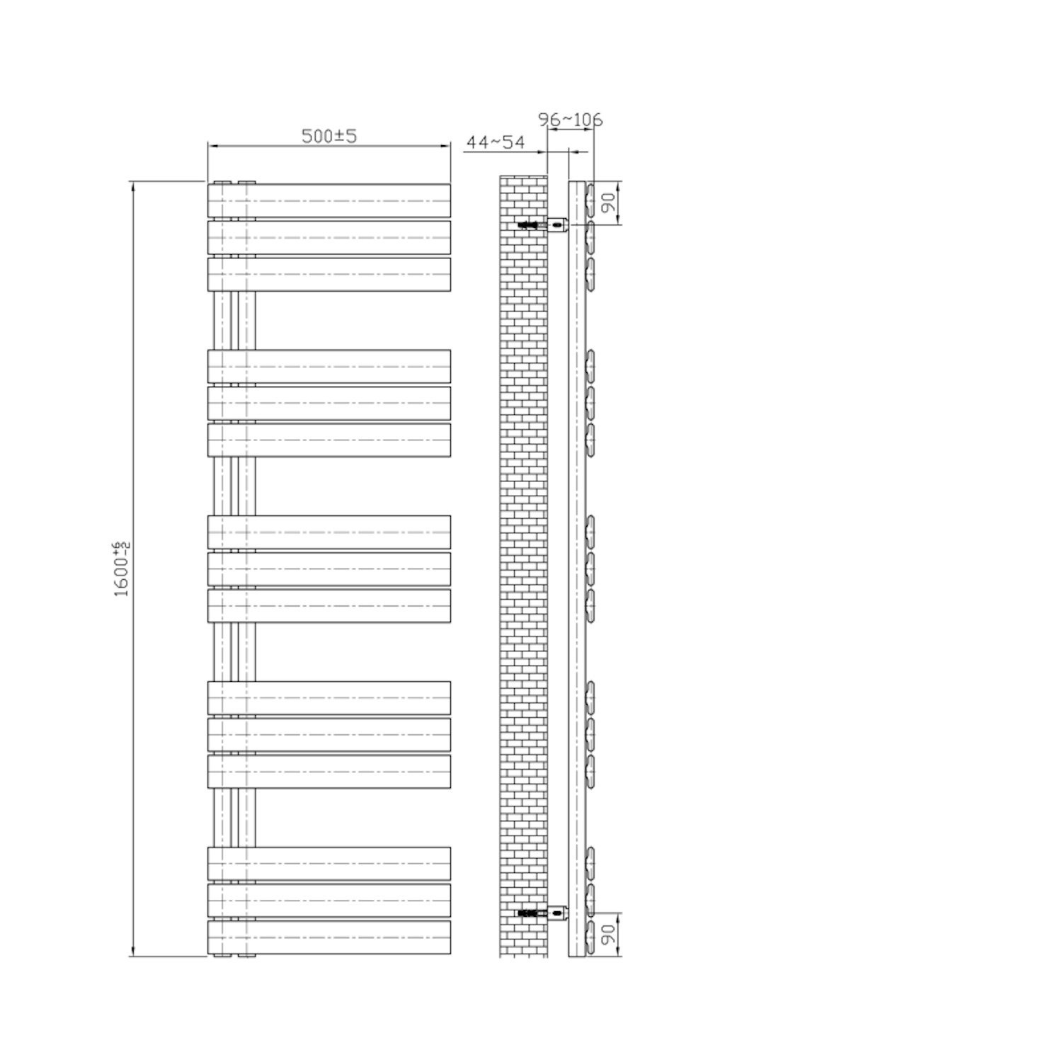 De radiator heeft een hoogte van 160 cm en een breedte van 50 cm.