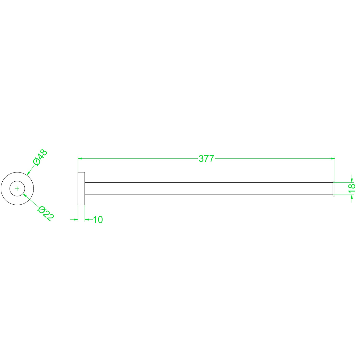 De handdoekrek heeft een breedte van 37,7 cm en een buis diameter van 1,8 cm.