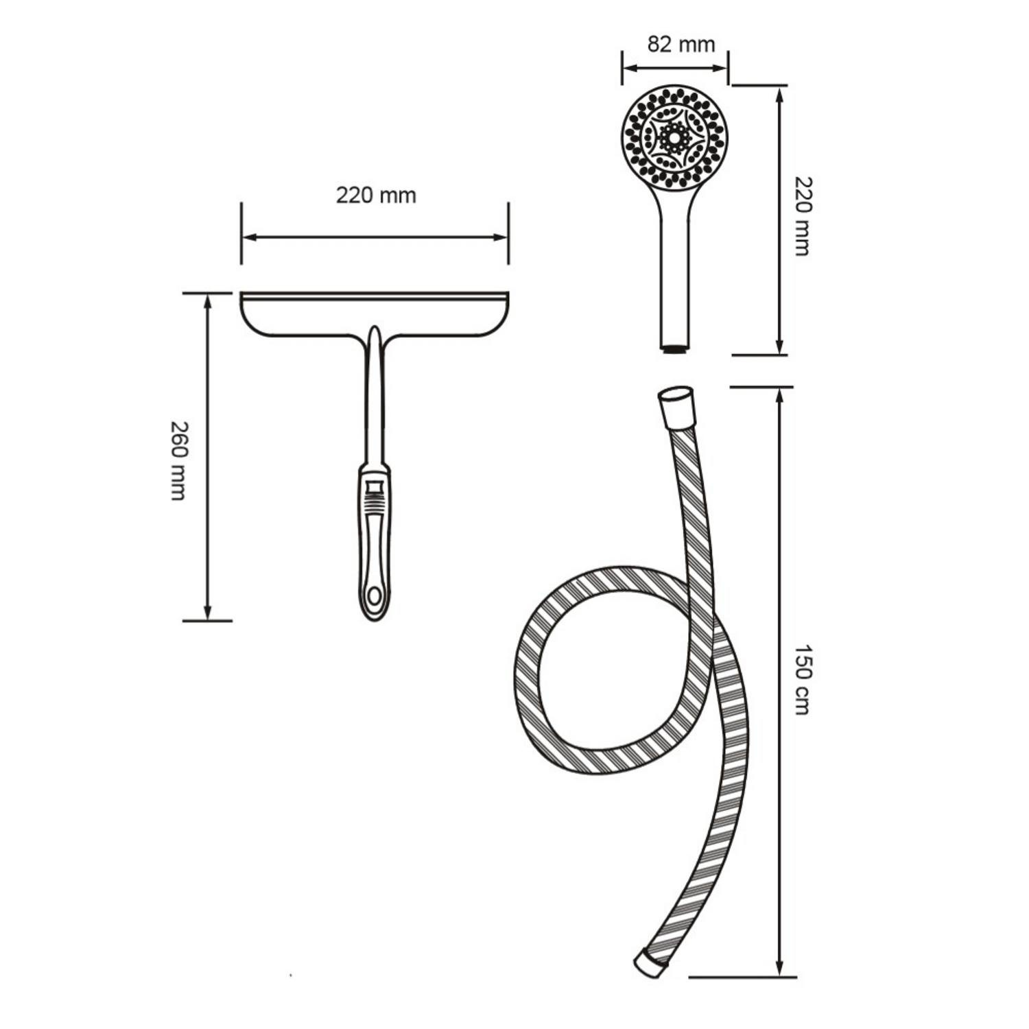 De Napoli handdoucheset van het merk Schutte is inclusief handdouche, een doucheslang van 150 cm met een chromen afwerking en een douchewisser. De handdouche beschikt over vijf straalsoorten en is waterbesparend. Daarnaast bevat de handdouche antikalk nozzles waar kalk zich niet aan kan hechten. De chromen handdouche heeft een diameter van 8.3 cm en is voorzien van een 1/2 aansluiting. De douchewisser is 26 cm lang en 22 cm breed.