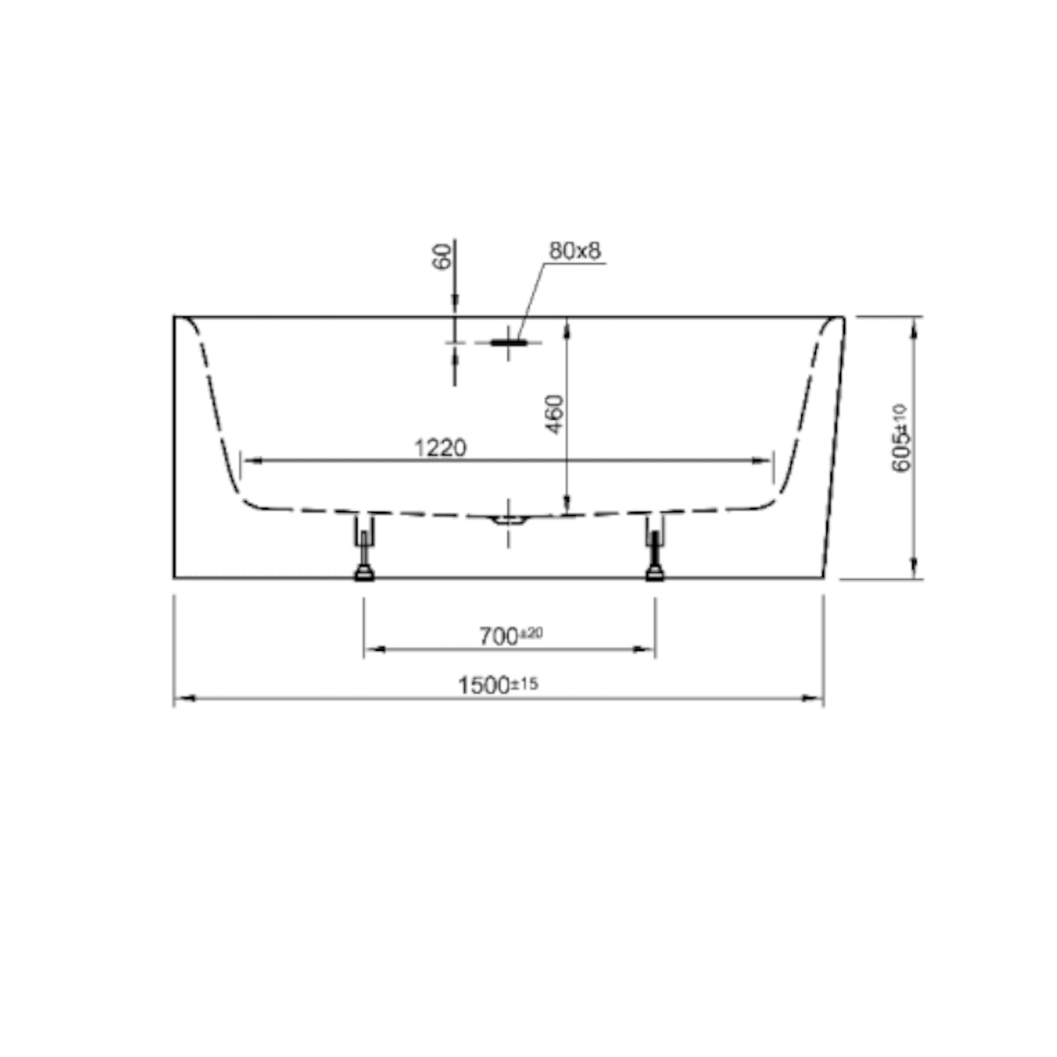 De breedte van dit bad is 80 cm, de lengte is 155 cm en de hoogte is 60,5 cm. Een ander voordeel van een Kansas bad is dat het eenvoudiger te plaatsen is dan een inbouw bad. Geen hak en breekwerk, de afvoeraansluiting zit in de holle ruimte onder het bad en de 1,5 meter lange flexibele slang geeft je voldoende speelruimte.