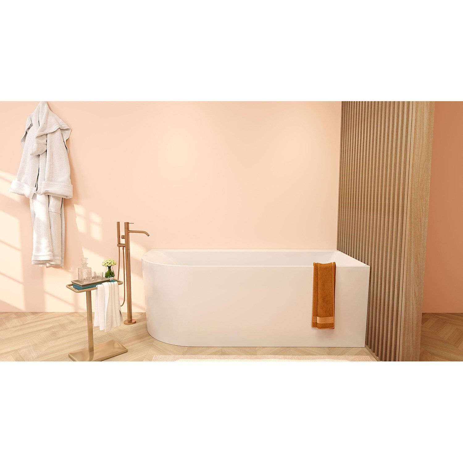 Bent u op zoek naar een hoekbad voor in uw badkamer? Dan is dit hoekbad van Wiesbaden uit de serie Zenn echt iets voor u. Dit bad is wit kleur met een witte afvoer en overloop in het midden van het bad. Het ligbad is gemaakt van acryl, dit heeft 2 grote voordelen. Het is makkelijk schoon te maken en het materiaal houdt de warmte langer vast, wat betekent dat u langer kunt genieten van het warme water. Het bad is 170 cm lang en 75 cm breed. Dit bad heeft de hoek aan de rechterkant zitten. De linker voorzijde loopt rond voor een mooie effect. Doordat het bad wit van kleur is, past hij goed in elk type badkamer. Van klassiek of strak tot modern.