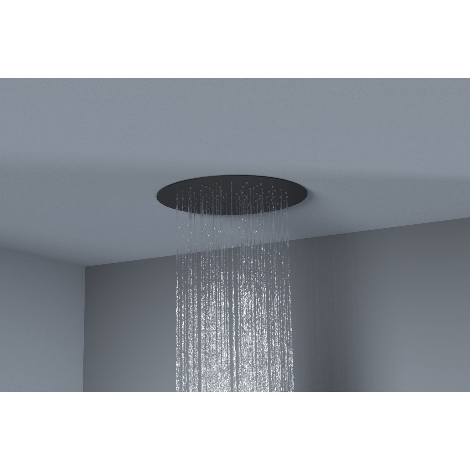 Deze inbouwregendouche is met gemak te installeren in uw natte ruimte zonder dat u bevestigingspunten zichtbaar zal hebben. Door de eenvoudige clips kunt u de hoofddouche met gemak bevestigen aan uw plafond. Met een diameter van 34 cm en zijn mat zwarte kleur past de hoofddouche perfect in een moderne natte ruimte.