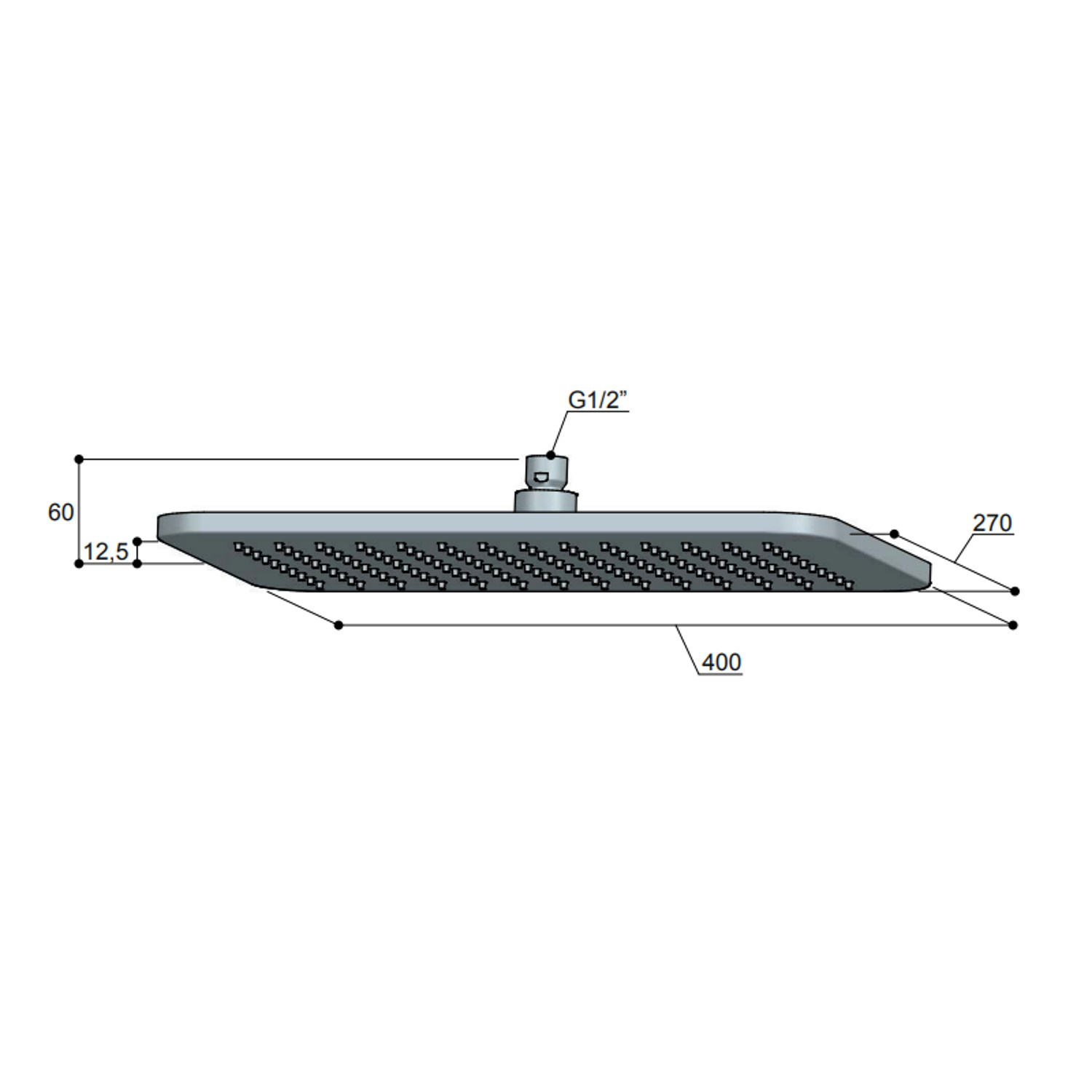 De hoofddouche is vierkant en is 22 bij 22 cm en is anderhalve cm dik. Let op dat er geen wandarm of plafonduitloop bij zit en dat apart besteld moet worden.