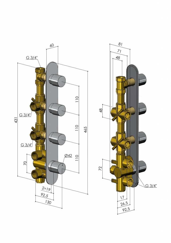 Inbouw douchethermostaat, met drie stopkranen, verticale plaatsing. Perfect voor in uw nieuwe badkamer. Zeer duurzaam product door middel van de keramische schijven waar deze kraan over beschikt.
