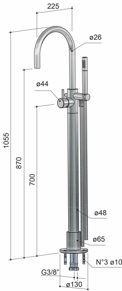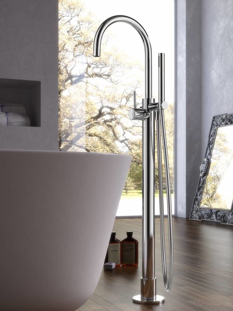 Prachtige vrijstaande badmengkraan, wordt geleverd met handdouche en doucheslang. Maak uw badkamer compleet met dit product in combinatie met een van onze beeldschone vrijstaande baden.