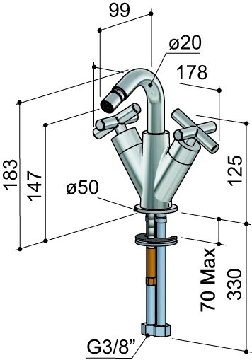 Elegante bidetmengkraan van Hotbath. Stijlvolle kraan vervaardig uit messing en met een chroom of geborsteld nikkel afwerking.