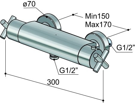 Opbouw douchethermostaat vervaardigd uit messing. Deze douchethermostaat heeft een 1/2" doucheslang onder aansluiting.