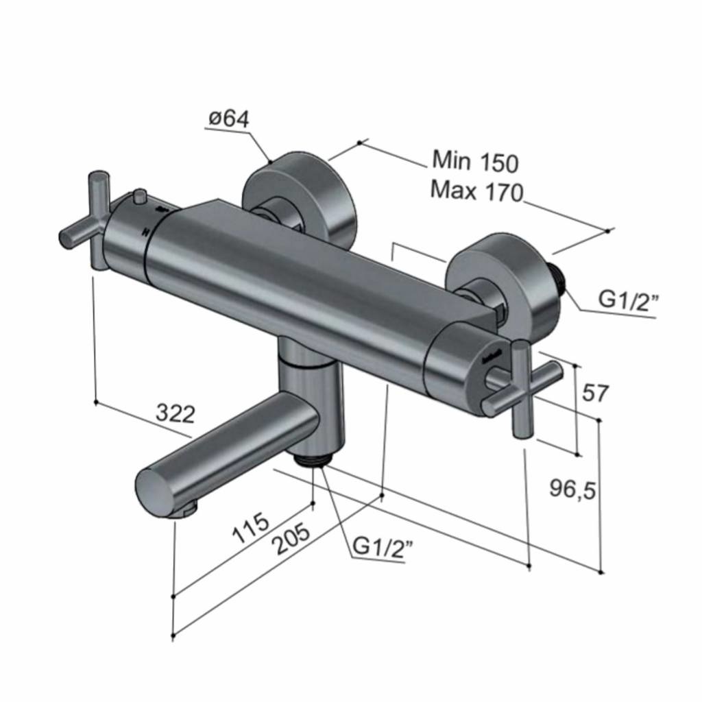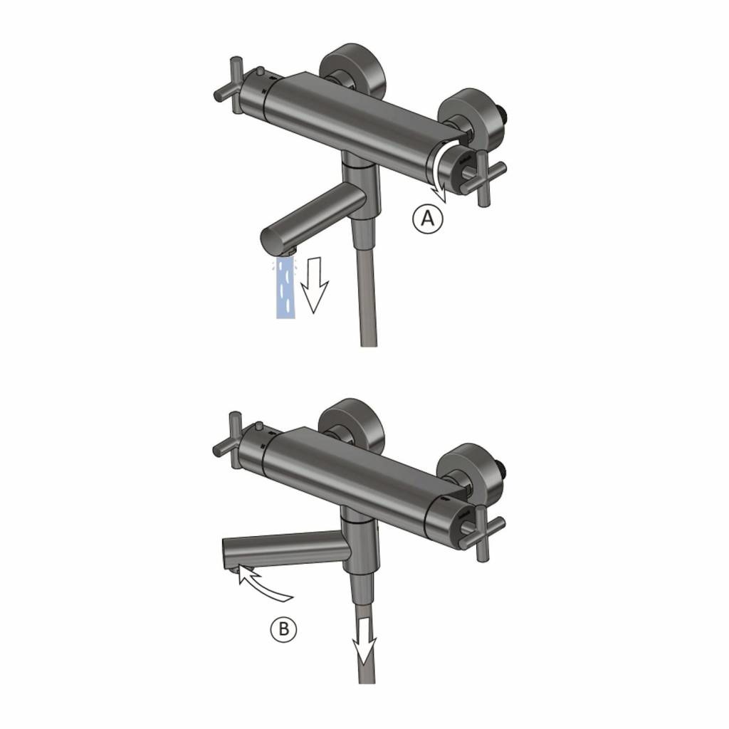 Opbouw badthermostaat beschikt over een rechte uitloop. Dit model komt zonder douchegarnituur.