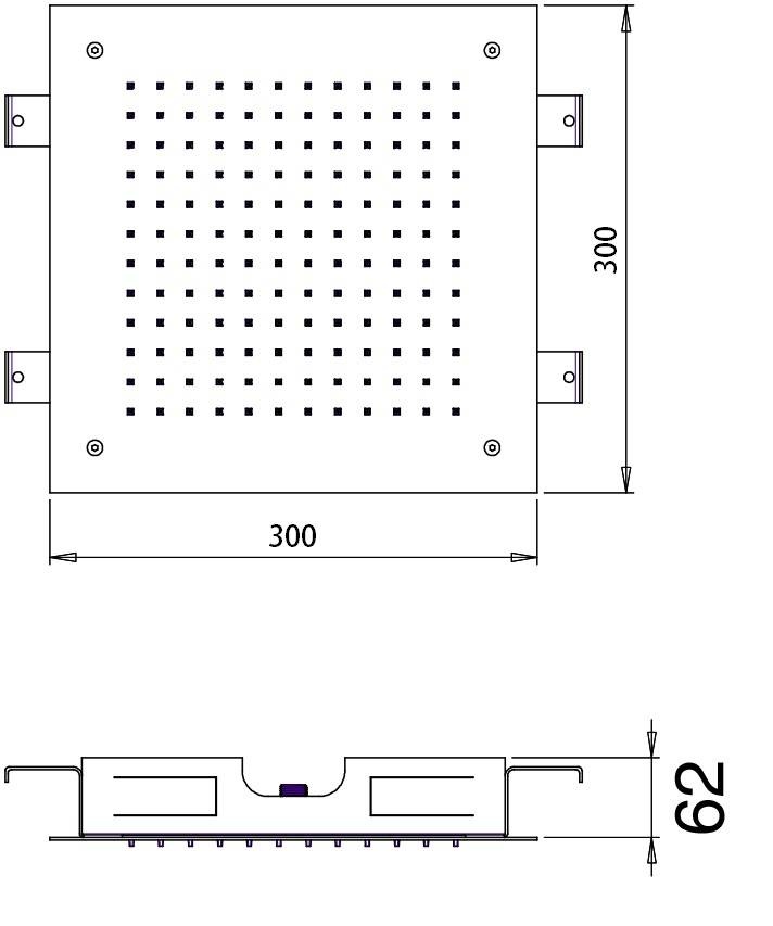 Vierkante inbouw hoofddouche 30 bij 30 cm, in een gepolijste of geborstelde uitvoering. Verkrijgbaar in verschillende maten en vormen. Heeft net zoals vele andere Hotbath hoofddouches het innovatieve Shower Power System waarmee u aanzienlijk veel water zult besparen.