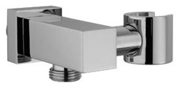 Wandsteun met uitlaat van Hotbath. Dit is een verstelbare wandsteun, vervaardigd uit messing. Dit product kunt u combineren met een van de Hotbath doucheslangen en handdouches.
