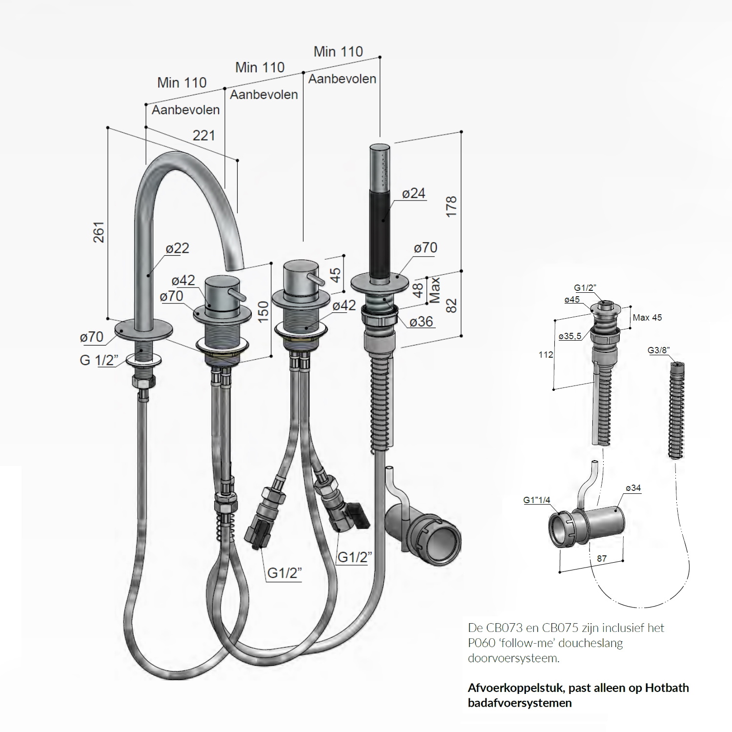 Deze Cobber badrandcombinatie van het merk Hotbath is een inbouw kraan met een geweldig design, die nagenoeg in iedere badkamer past. De badkraan heeft een lengte uitloop van 22.1 cm en heeft een licht gebogen hals. Deze set wordt geleverd inclusief een doucheslang en een staafhanddouche met 1 douchestand. De handdouche is uniek doordat het handvat doorloopt in de sproeikop.