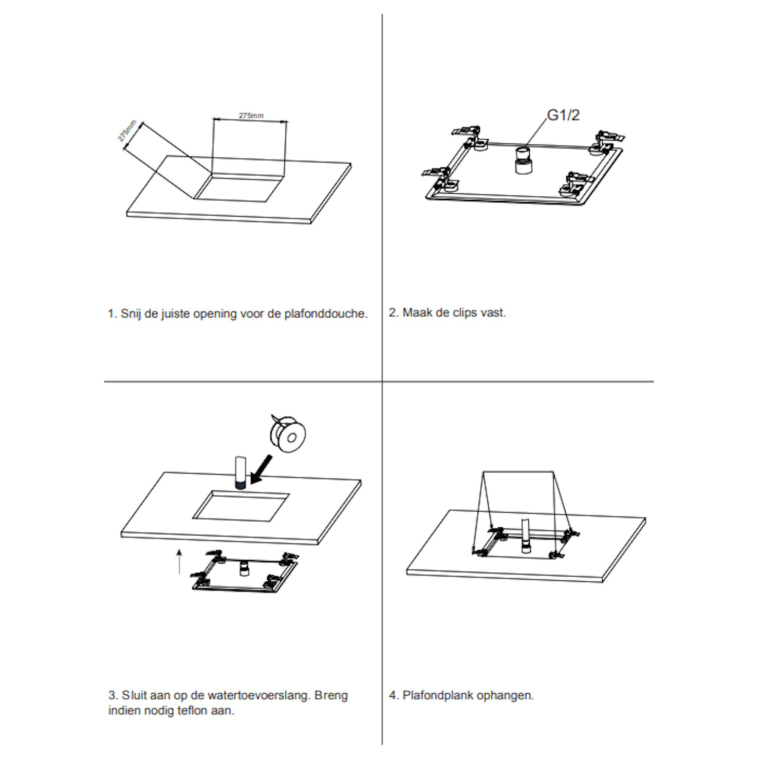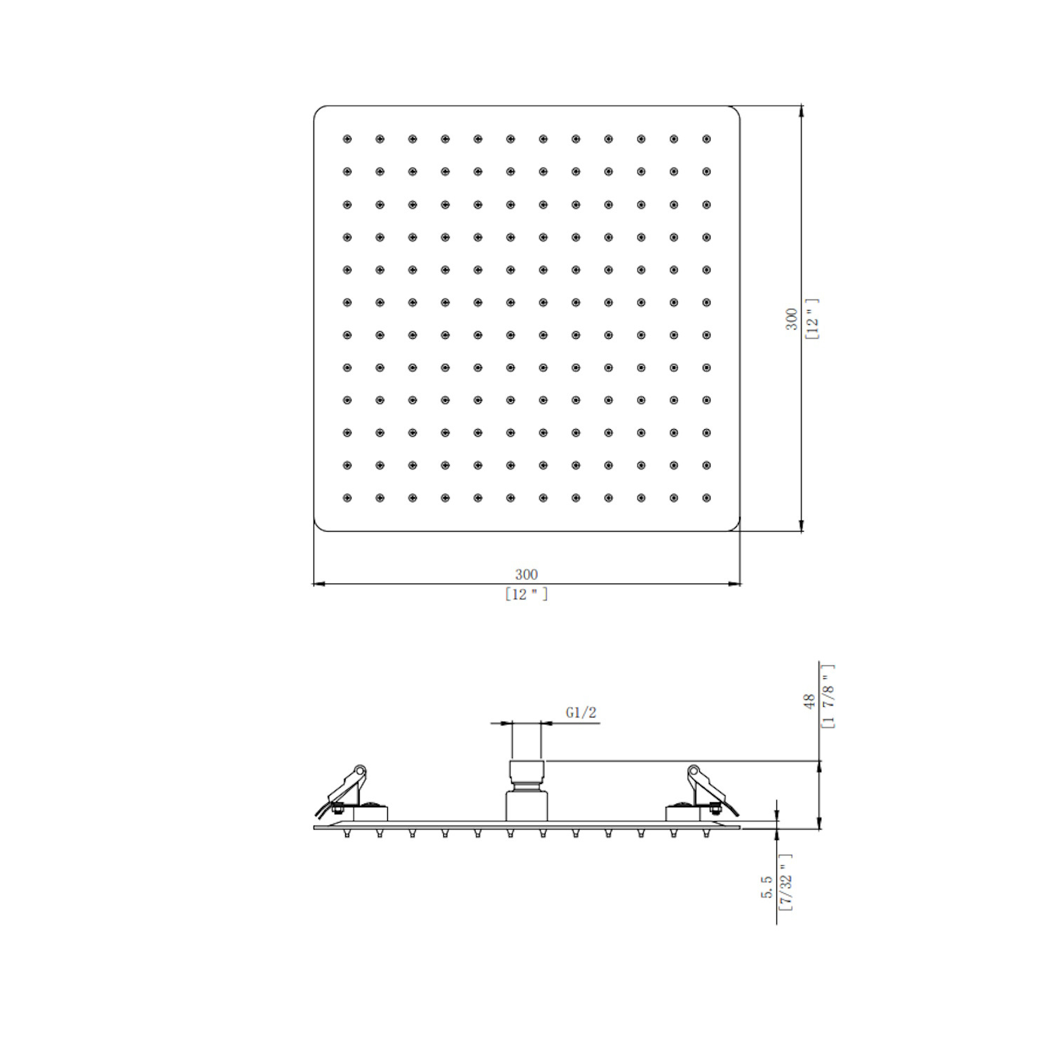 De douchekop heeft een lengte van 30 cm en een breedte van 30 cm.