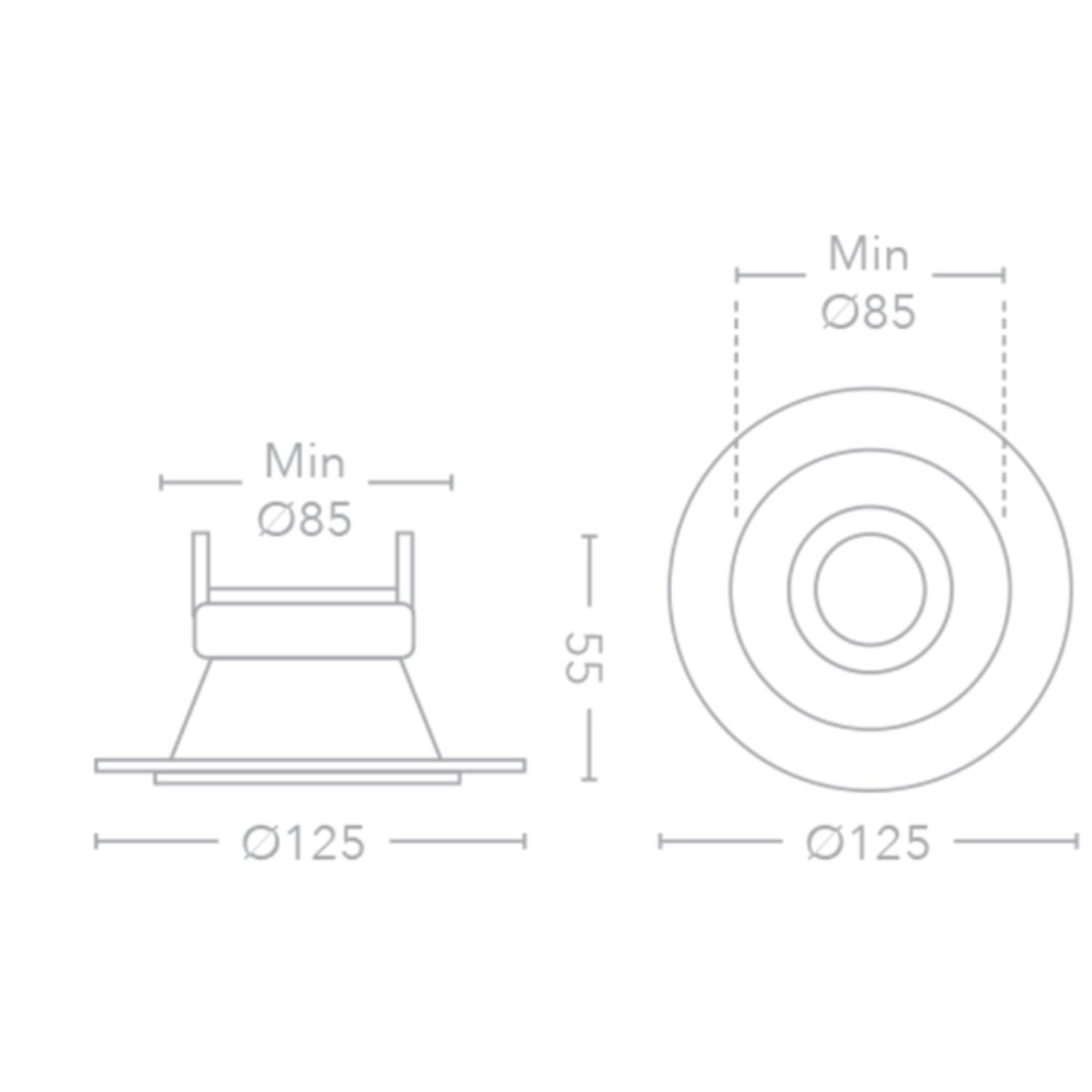 De afmeting van deze spot is 12.5x5.5 cm. U krijgt een fabrieksgarantie van 5 jaar. De lamp wordt geleverd exclusief driver en lichtbron. Deze kunt u onderaan de pagina bij bestellen.