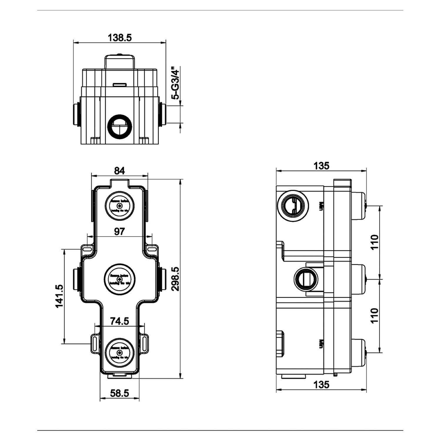 Inbouwdeel Box 3-Wegs Douchethermostaat