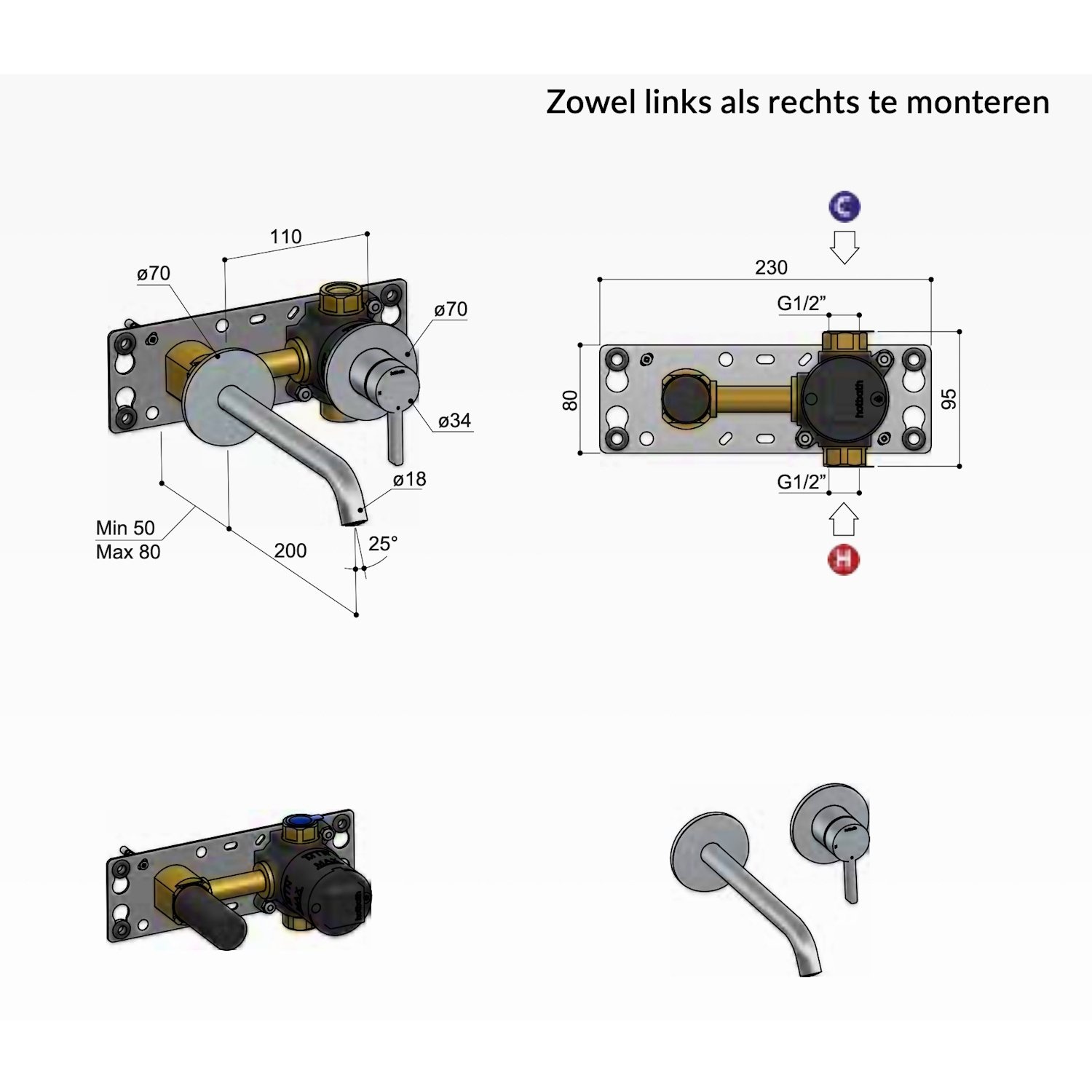 Inbouwdeel t.b.v. wastafelkraan CB106EXT