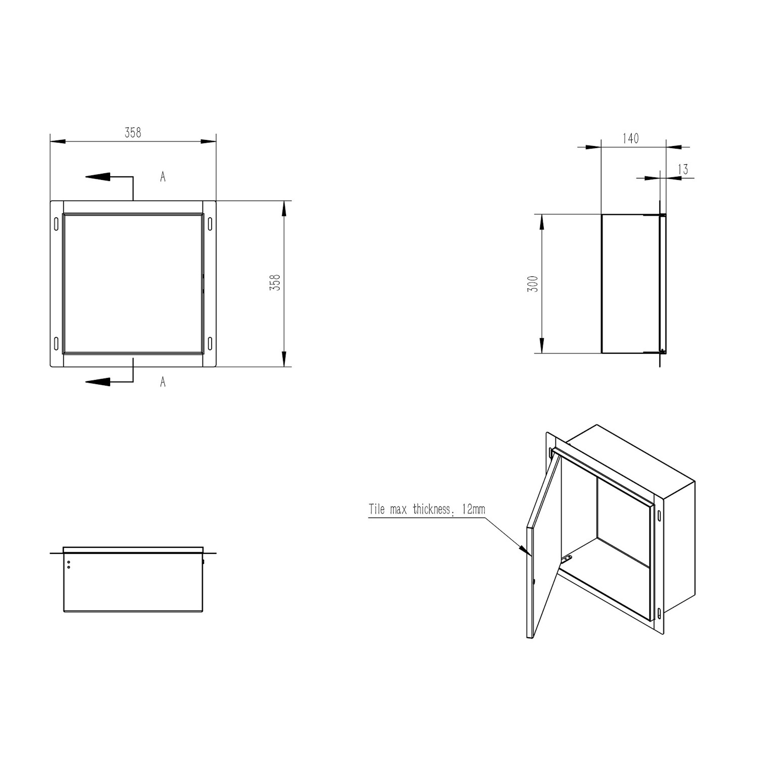 Bent u op zoek naar een verborgen opbergruimte voor in uw badkamer? Dan is deze inbouwnis van Wiesbaden uit de serie Demis echt iets voor u. De inbouwnis heeft de kleur RVS en bevat een betegelbare deur. De nis is 30 cm hoog, 30 cm breed en heeft een diepte van 14 cm. Dankzij de betegelbare deur wordt de nis bijna onzichtbaar in de muur. De maximale tegeldikte is 12 mm.