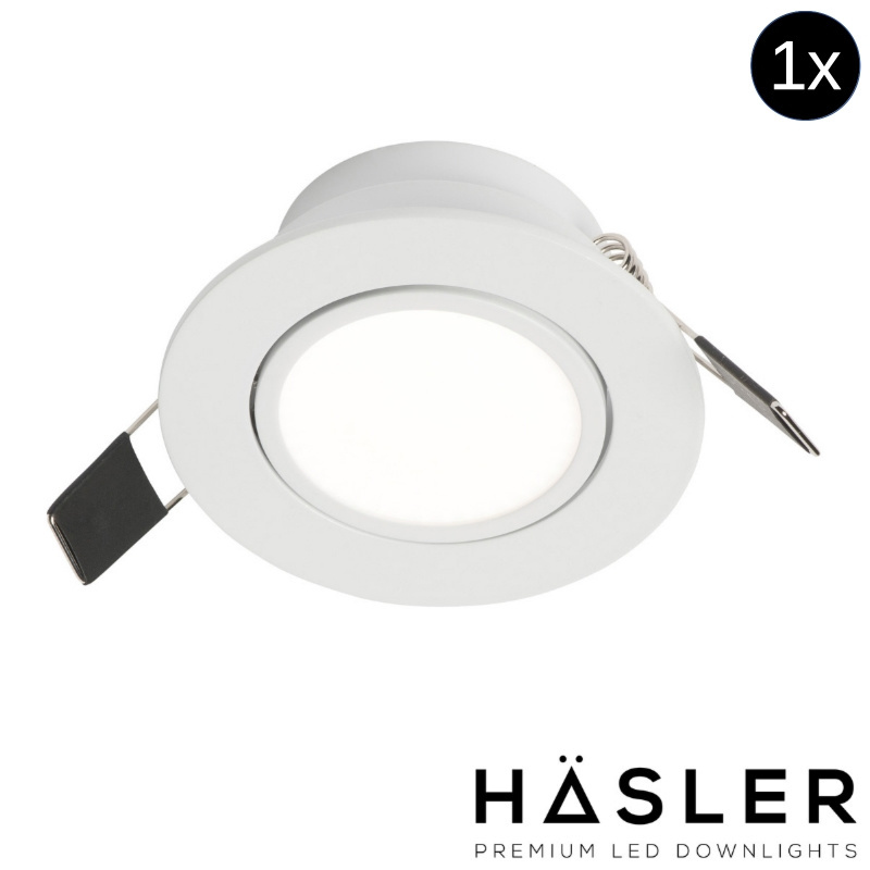 Belangrijk: Deze spot is niet werkbaar zonder dimmer en afdekmateriaal. U kunt de set compleet maken met dimmer en afdekmateriaal van Häsler. Bestel beide producten om zeker te weten dat uw set werkbaar en compleet is.