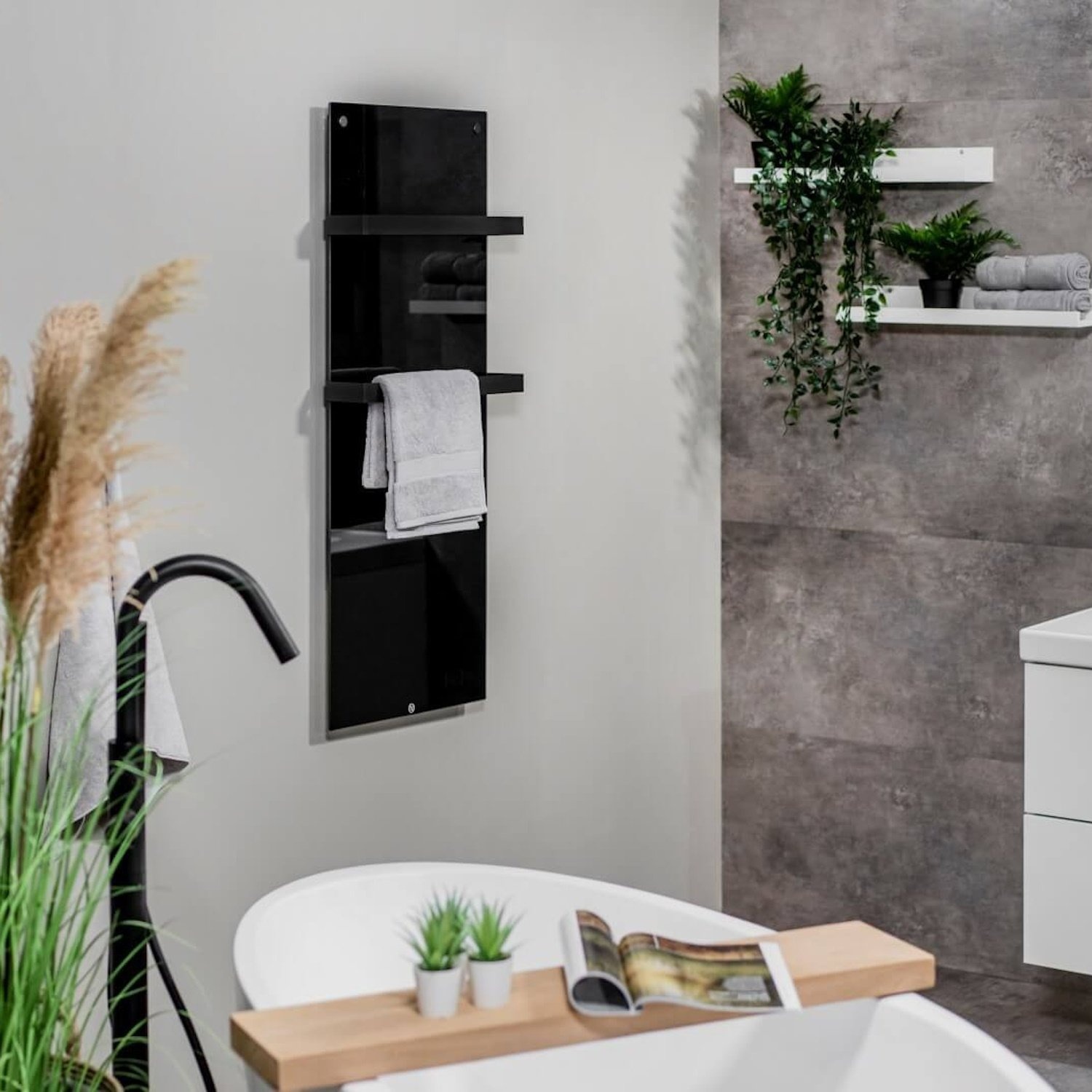 Ook kunt u door middel van dit infraroodpaneel een warme handdoek krijgen voor na het douchen, er zitten namelijk 2 roestvrijstalen beugels aan waar u uw handdoeken aan op kunt hangen om lekker op te warmen.