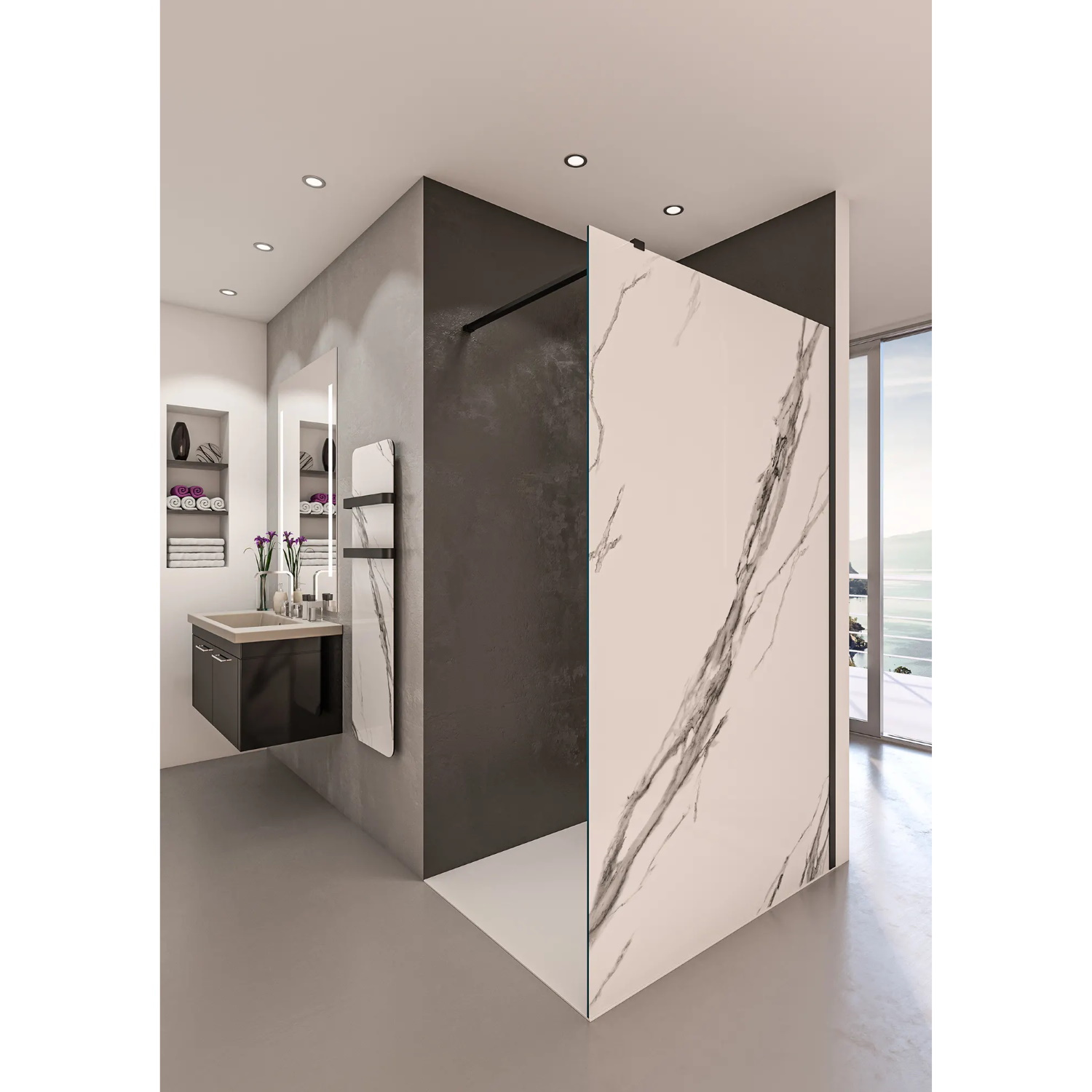 De douchewand wordt inclusief een mat zwarte stabilisatiestang geleverd. De wand is ook verkrijgbaar in de maten 90x200 cm, 120x200 cm en 140x200 cm.