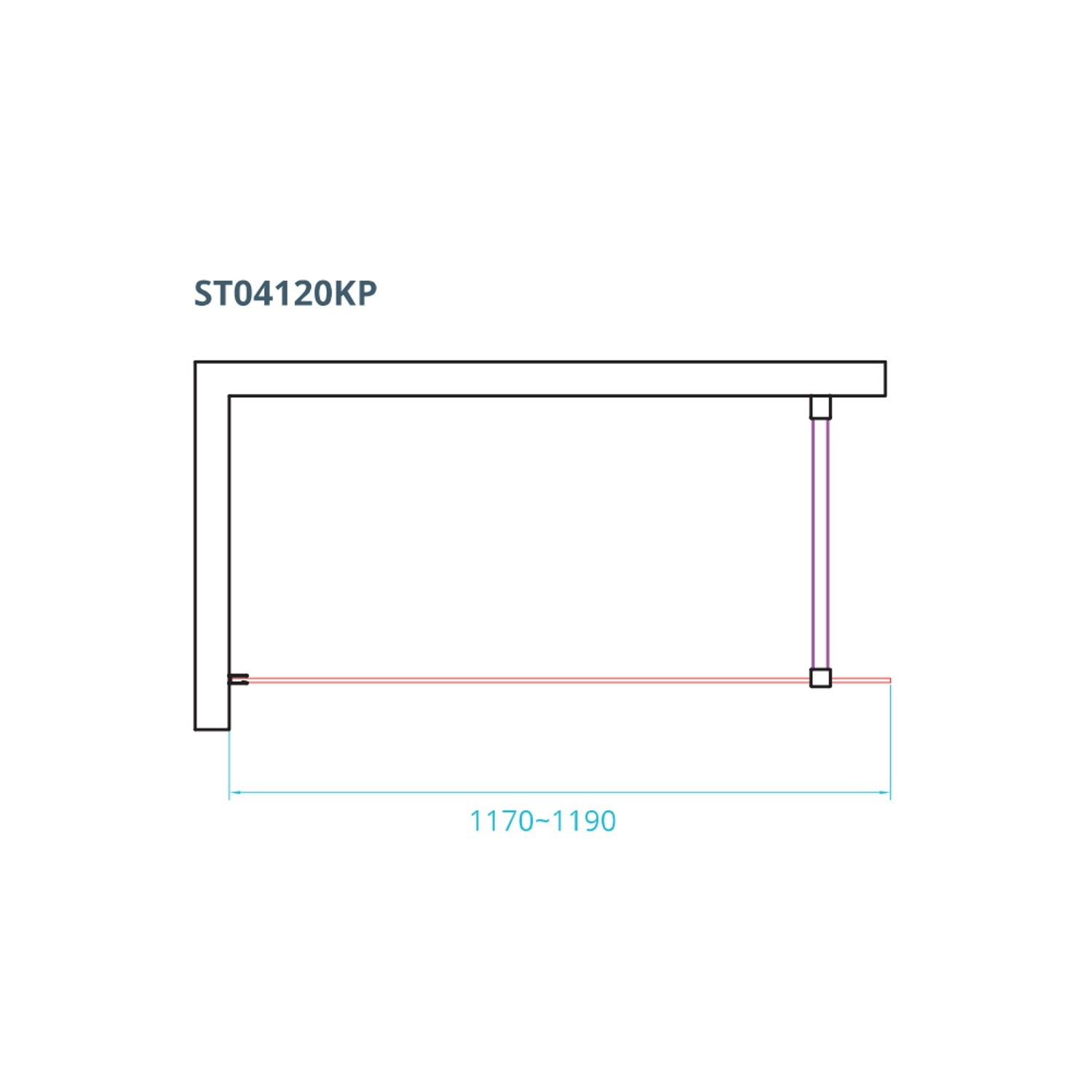 De douchewand is 117 tot 119 cm breed en 200 cm hoog.