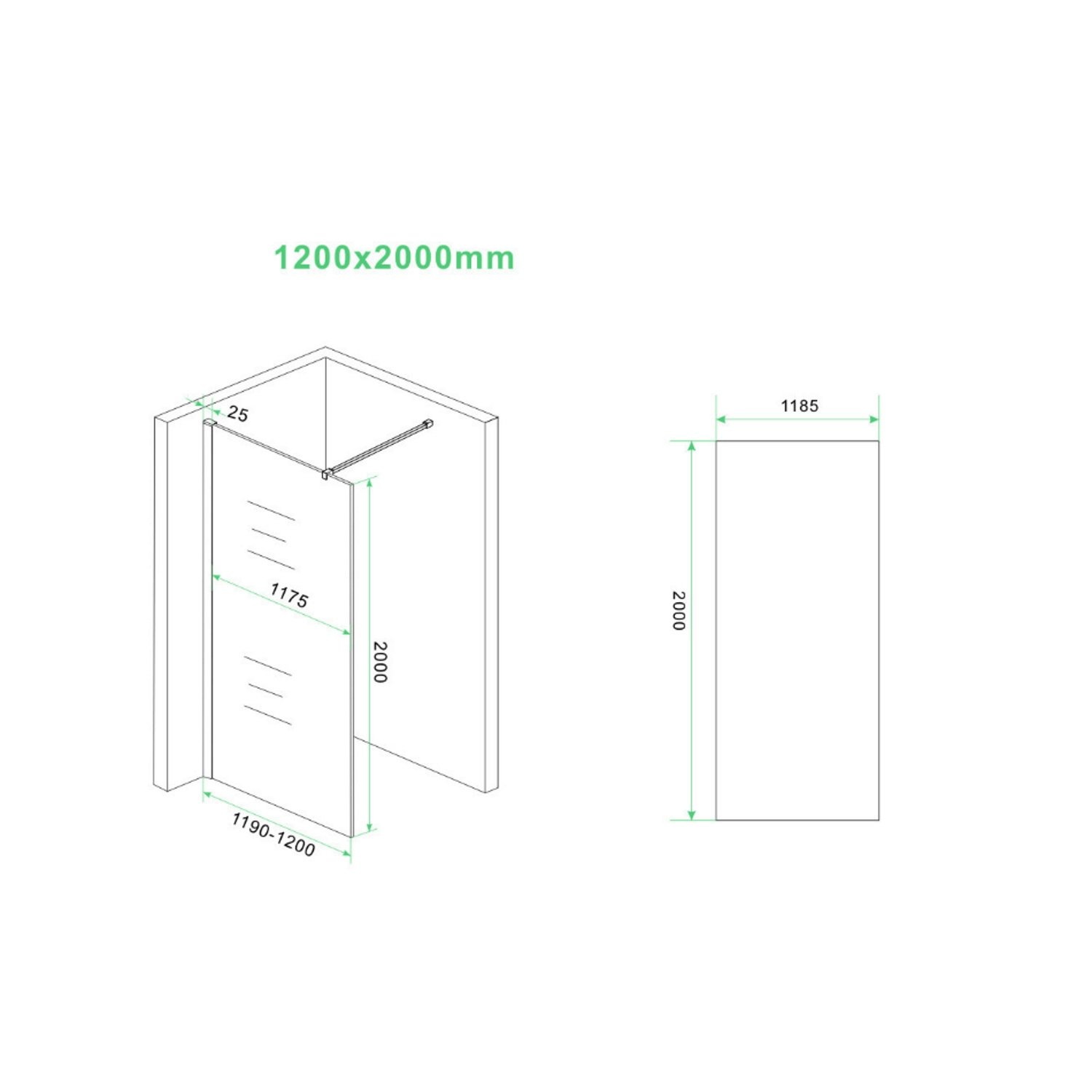De douchecabine is voorzien 8mm dik veiligheidsglas. De douchewand heeft geen vloerbevestiging, waardoor u de wand direct na het plaatsen transparant kunt afkitten.