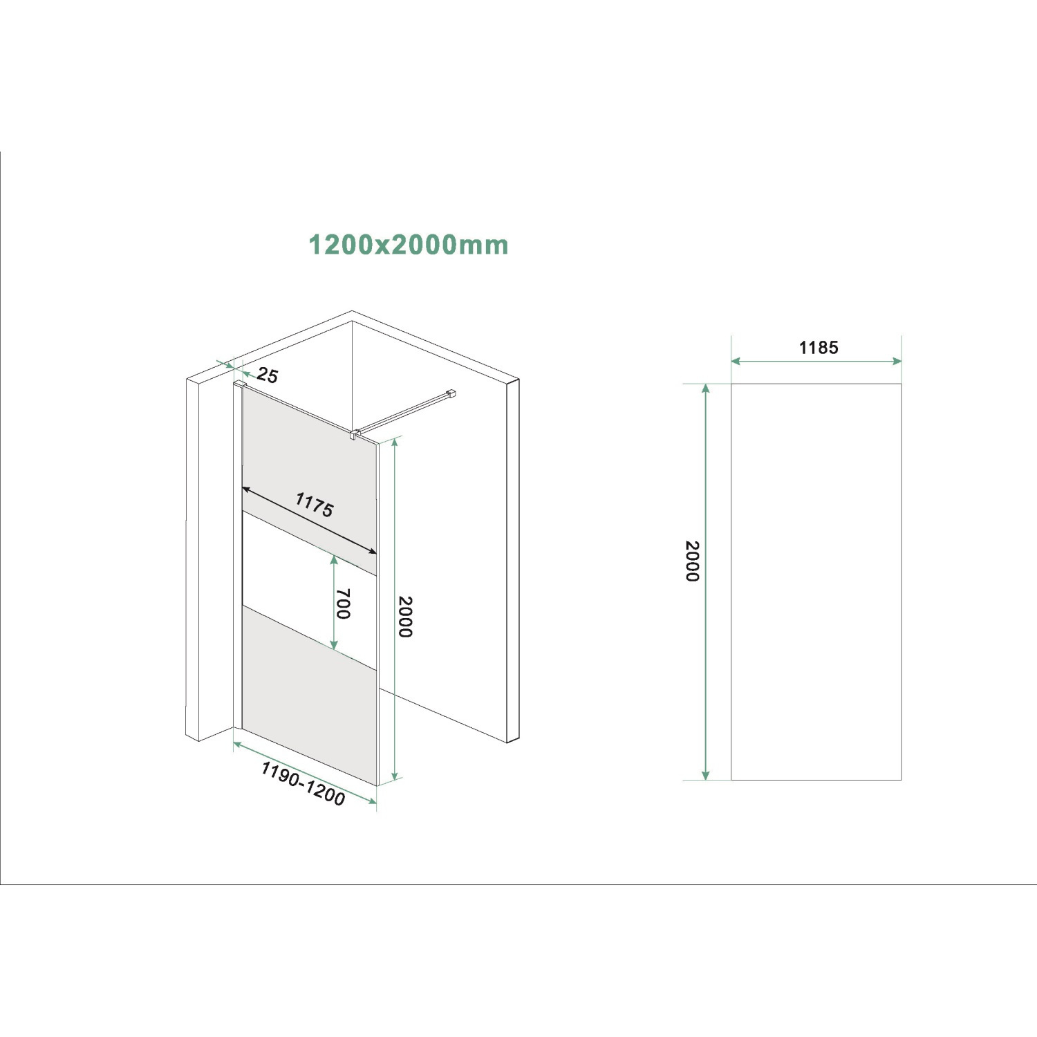 De douchecabine is voorzien 8mm dik veiligheidsglas. De douchewand heeft geen vloerbevestiging, waardoor u de wand direct na het plaatsen transparant kunt afkitten.