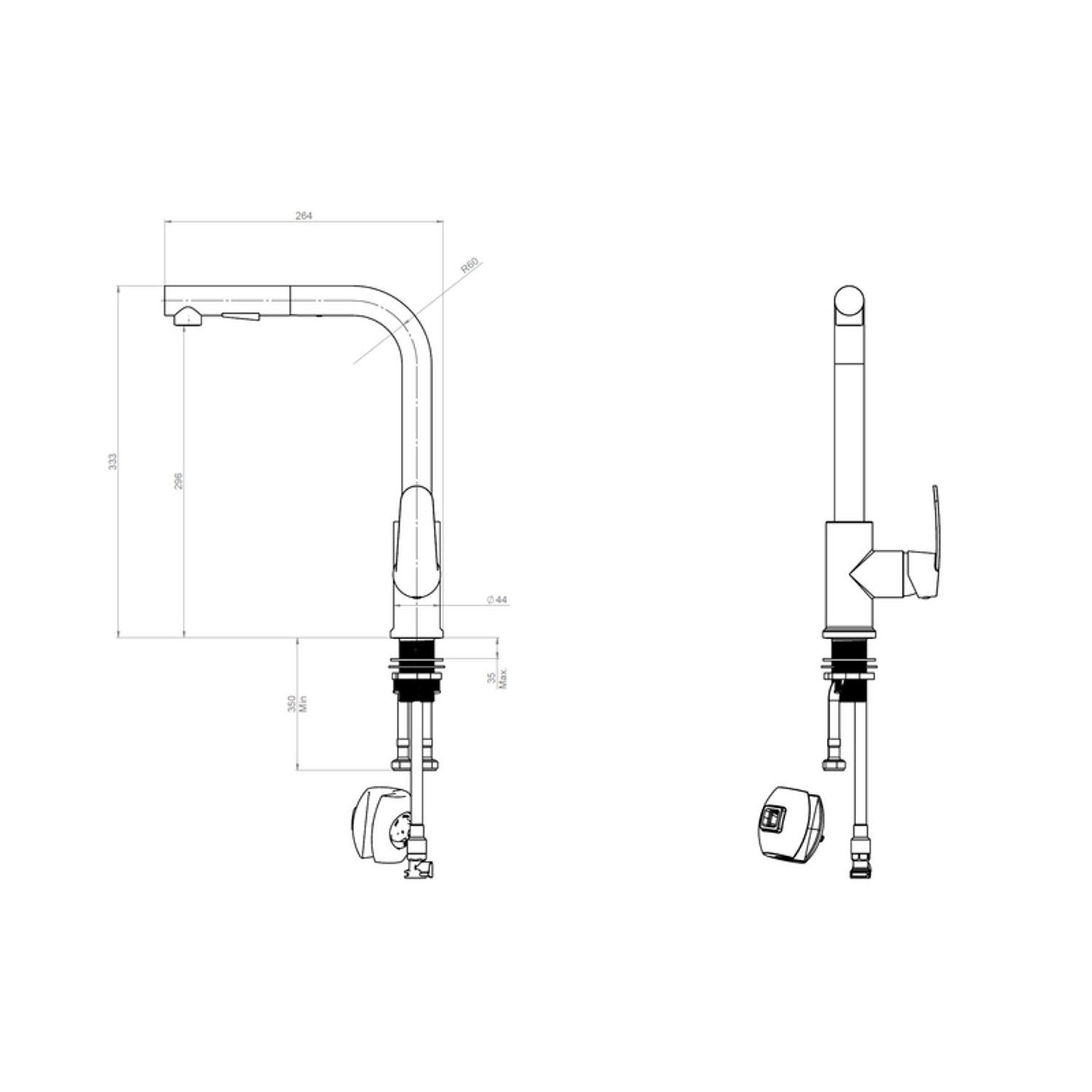 Dankzij de uittrekbare uitloop is de wasbak gemakkelijk uit te spoelen en schoon te houden.