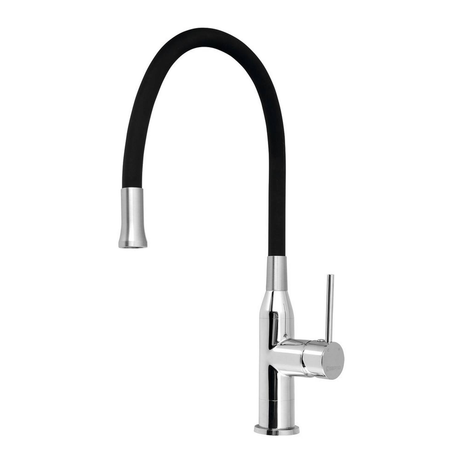 Als extra optie heeft de kraan een flexibele siliconen uitloop, hierdoor is de kraan extra handig! De praktische kraan is afgewerkt in een chromen kleur met een zwarte uitloop.