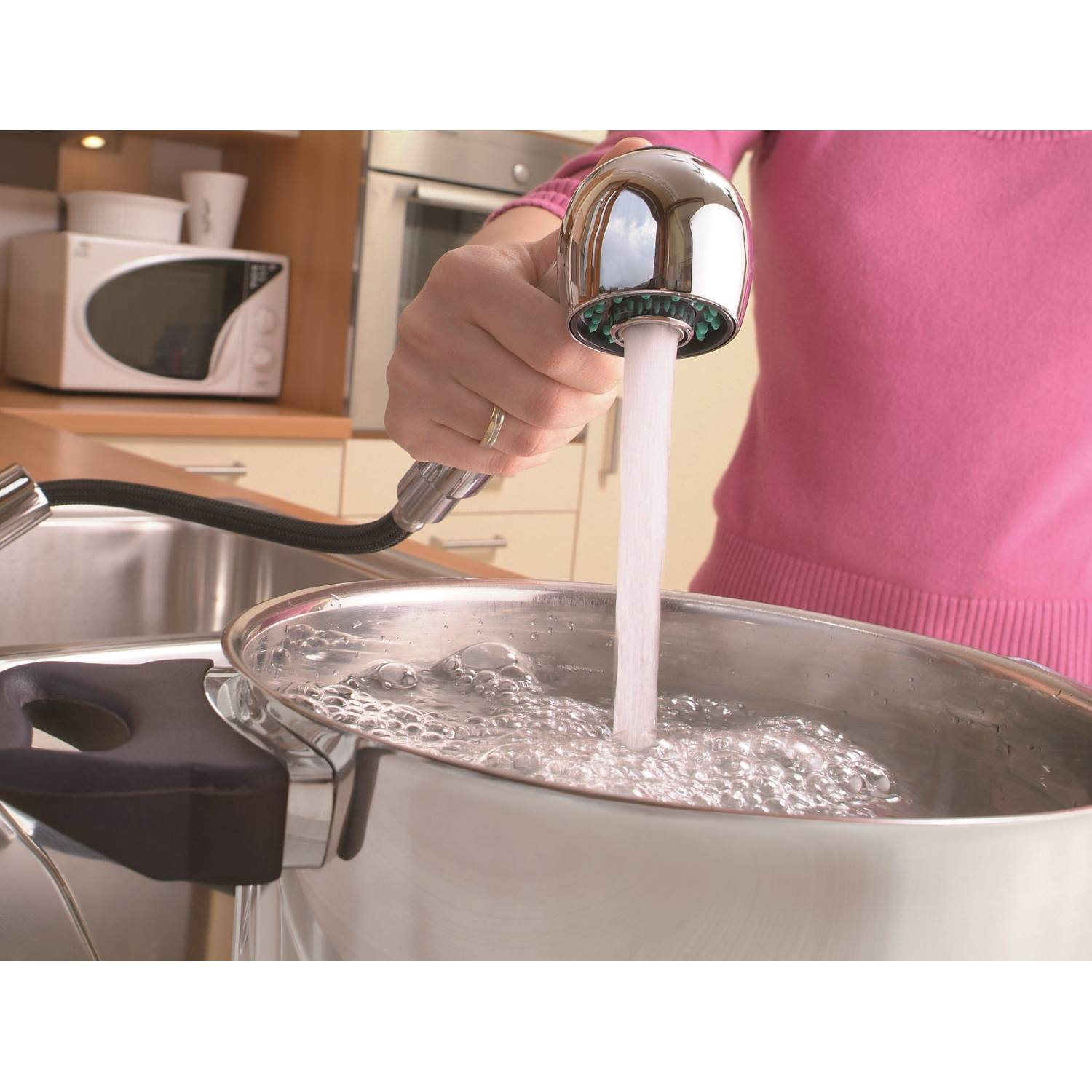 Met de hendel kunt u de temperatuur van het water regelen. De keukenkraan beschikt over een draaibare uitloop. De draaibare uitloop maakt het mogelijk om een dubbele vaat met water te vullen. De mengkraan bevat een ook uittrekbare sproeier waarmee u gemakkelijk de kraan in verschillende richtingen kan bewegen. De mengkraan is 26.4 cm lang, 22.1 cm hoog en heeft een diameter van 5.8 cm.