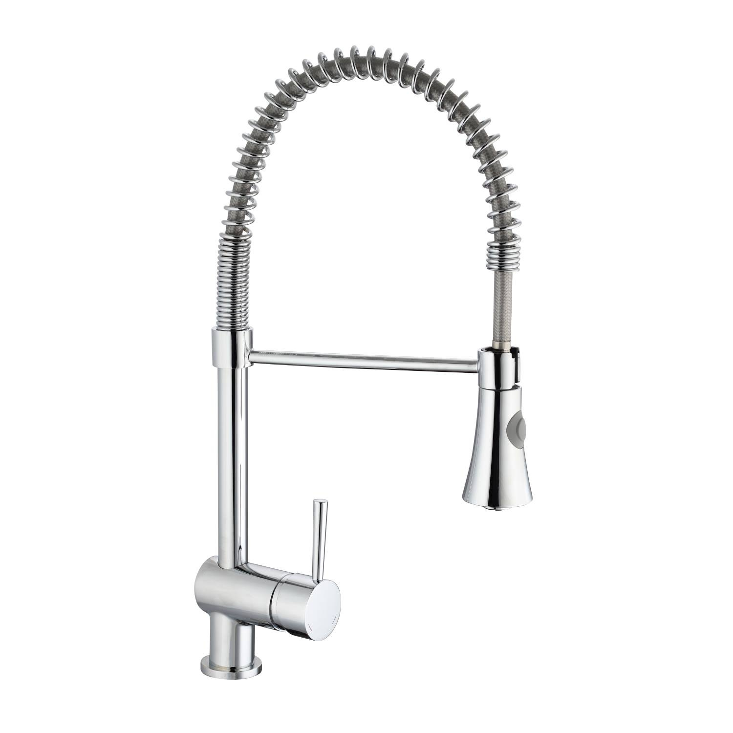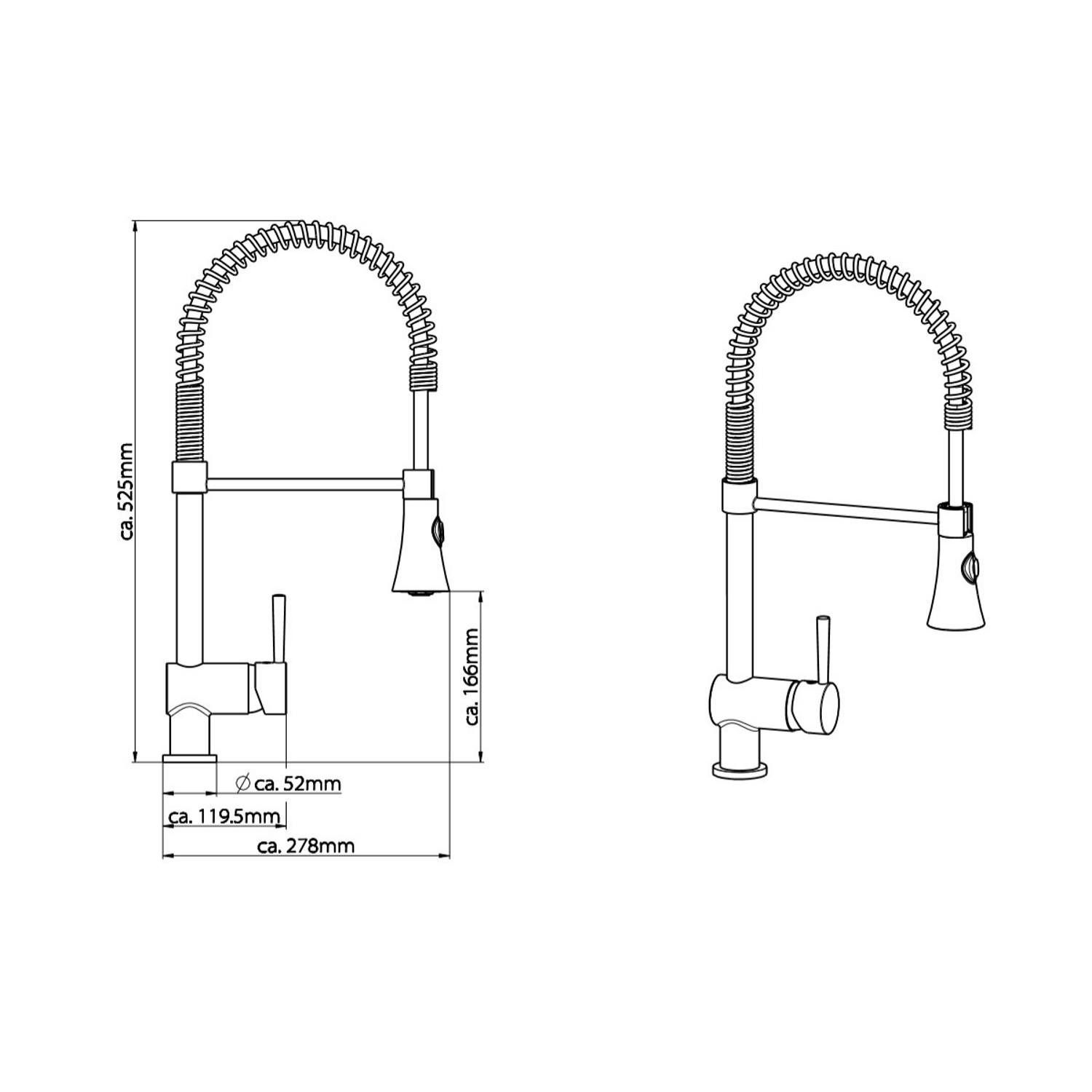 Met de zijdelingse hendel kunt u de temperatuur van het water regelen. De keukenkraan beschikt over een hoge en draaibare uitloop met spiraalveer. De draaibare uitloop maakt het mogelijk om een dubbele vaat met water te vullen. De mengkraan bevat een ook uittrekbare sproeier waarmee u gemakkelijk de kraan in verschillende richtingen kan bewegen. De mengkraan is 27.8 cm lang, 52.5 cm hoog en heeft een diameter van 5.2 cm.