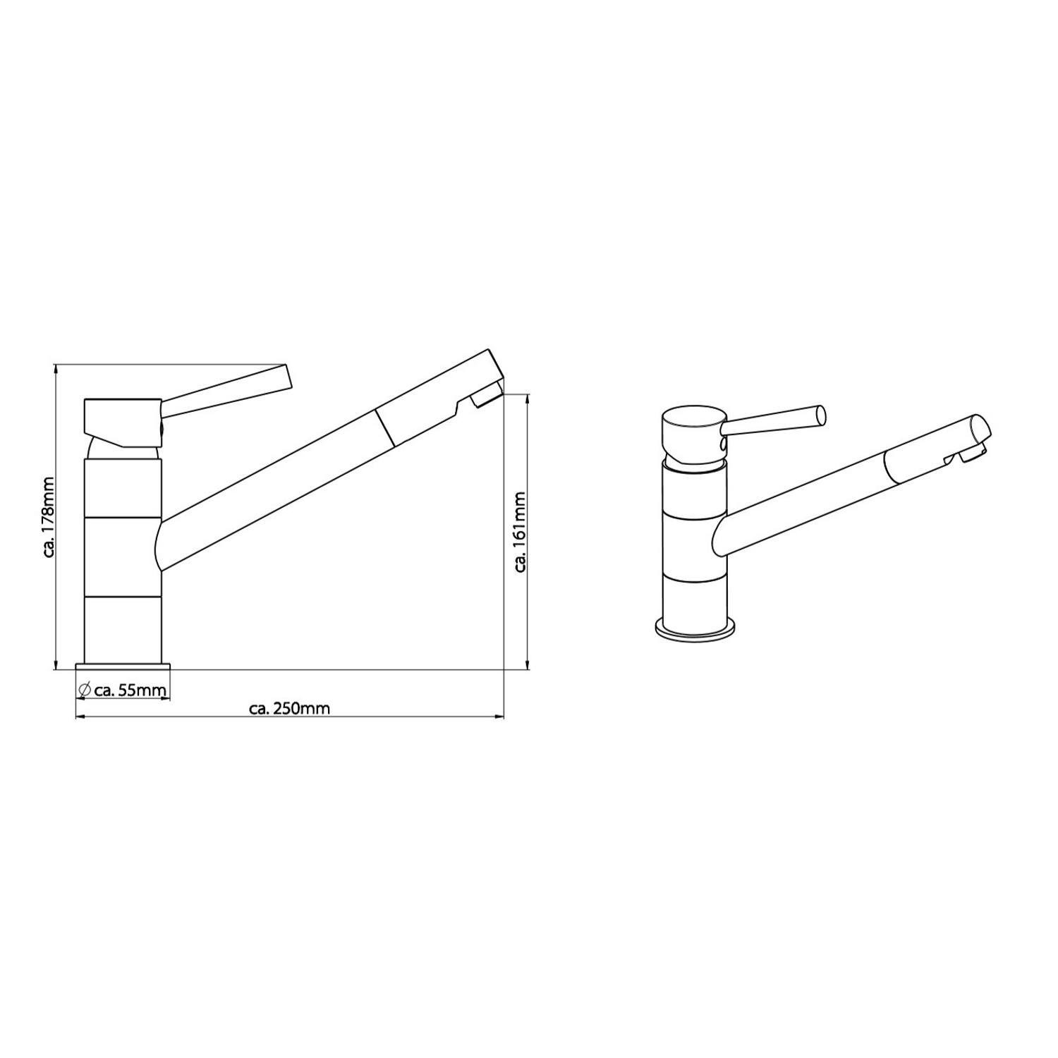 De Cornwall keukenkraan van het merk Schutte is gemaakt van messing en heeft een roestvrij staal look. De keukenkraan is gemakkelijk te bedienen met een hendel. Met de hendel kunt u de temperatuur van het water regelen. De keukenkraan beschikt over een draaibare uitloop en mousseur. De draaibare uitloop maakt het mogelijk om een dubbele vaat met water te vullen. De draaibare mousseur maakt dat de kraan ook als fonteinkraan gebruikt kan worden. De mengkraan is 25 cm lang, 17.8 cm hoog en het heeft een diameter van 5.5 cm.