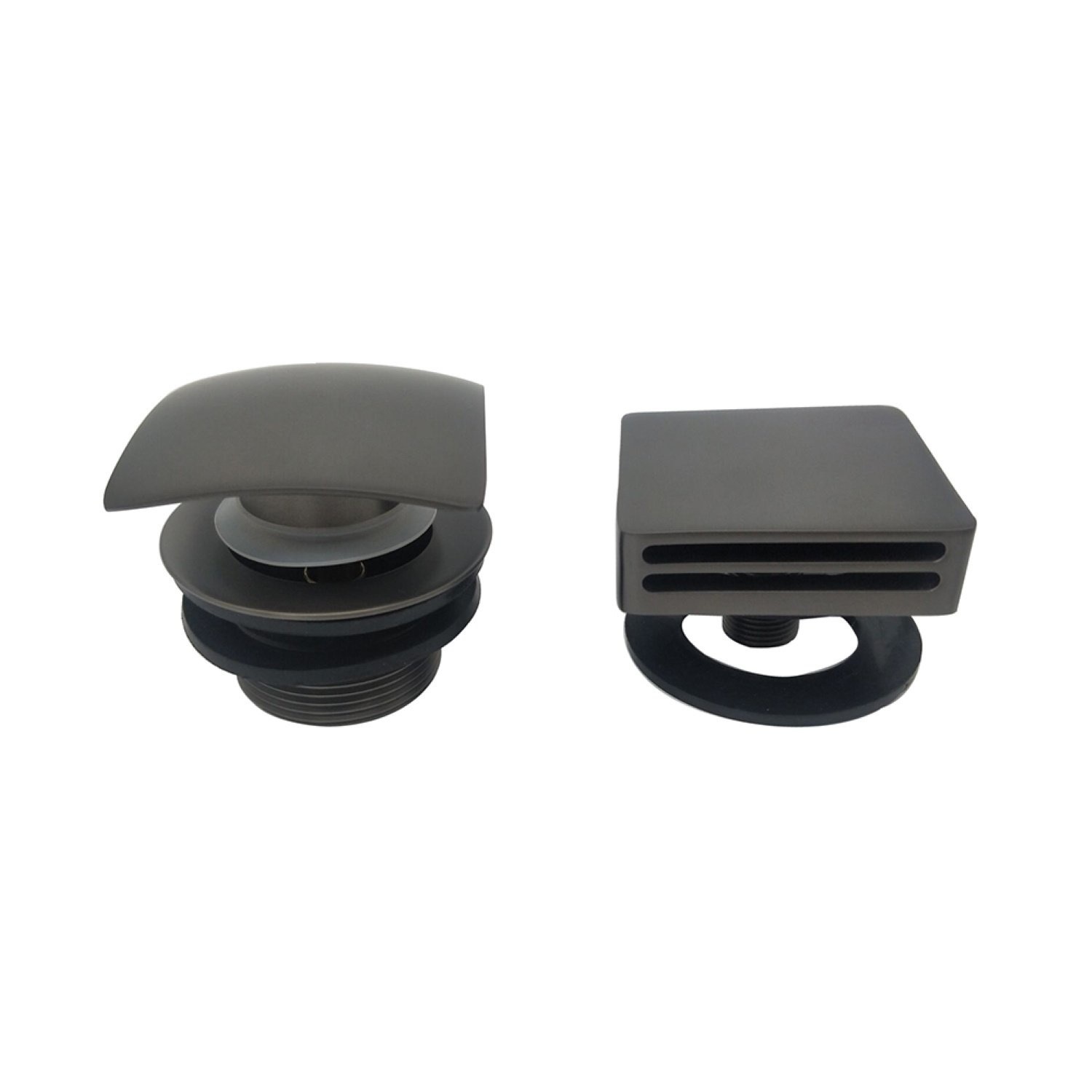 De badplug overloopcombinatie van Wiesbaden bevat ook een badvul-functie. Het bad word gevuld door dit bedieningsknop in de kleur gunmetal. De badplug overloopcombinatie is eenvoudig te monteren op een inbouw-mengkraan.