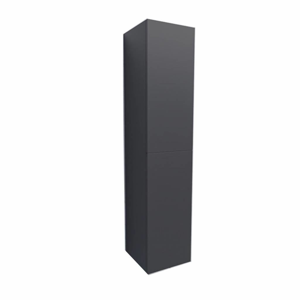 De hoge kast is gemaakt van MDF. De planken zijn gespoten in de kleuren mat wit, antraciet, wood dark brown of wood washed oak. Doordat het gespoten is, is het meubel uitstekend geschikt voor in vochtige ruimtes. De twee deuren zijn voorzien van druksluitingen en helemaal greeploos. De kast is daarnaast omkeerbaar, zo kunt u zelf kiezen of u de kast links of rechts plaatst.