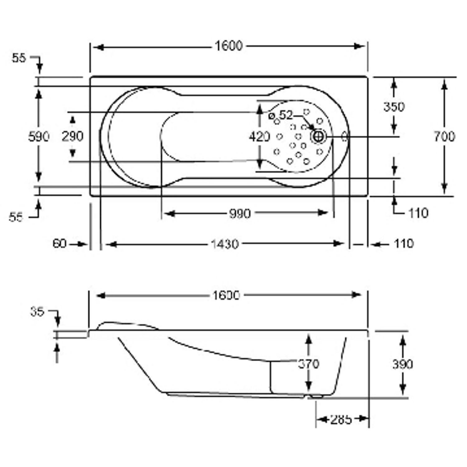 Dit bad heeft een overloop voorziening, waardoor u geen water verspilt door het overlopen van het bad. De waste zorgt ervoor dat u de afvoer kunt sluiten en openen. Het bad neemt niet veel ruimte in met de afmetingen 160x70x40 cm. De zitplaats is 99 cm lang en 42 cm breed. Poten zijn inbegrepen bij dit bad.