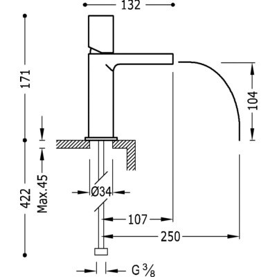 Loft Wastafelmengkraan open watervalkraan. OPMERKING: Kranen met een watervaluitloop worden geleverd met 2 instelkranen met filter (Nr.: 91.34.525)