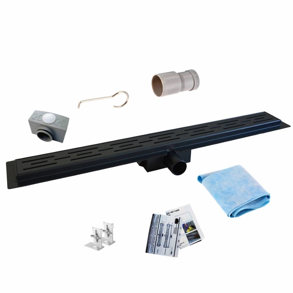 De moderne mat zwarte douchegoot van 7cm breed is in verschillende maten verkrijgbaar om voor elke badkamer de juiste douchegoot te kunnen realiseren. De goot is volledig van RVS met als voordeel dat het niet roest en gaat lang mee.