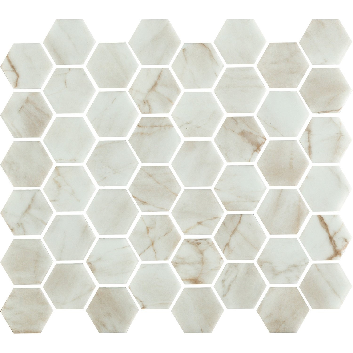 U heeft gekozen voor de stijlvolle mozaïek van The Mosaic Factory, deze behoort tot de Valencia serie. Deze hexagon vormige mozaïek heeft een afmeting van 4.4x5 cm en heeft een dikte van 0.5 cm. De tegels zijn mat afgewerkt in een wit marmer. De Valencia tegels zijn gemaakt van gerecycled glas en geeft hierdoor uw ruimte een mooi natuurlijke look.