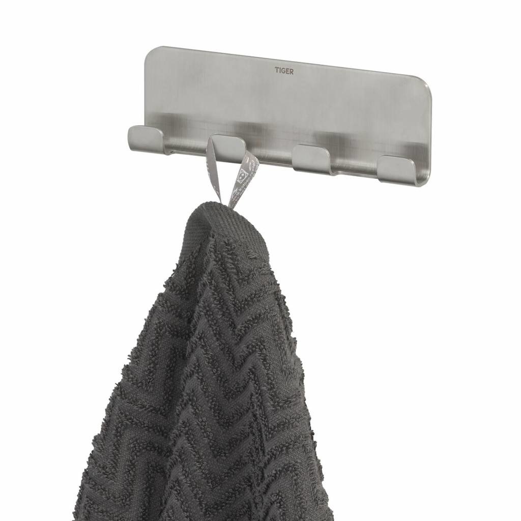 De multihaak uit de Colar serie van Tiger is uitgevoerd in geborsteld rvs. De haak is voorzien van een krachtige dubbelzijdige tape waardoor montage op iedere gladde, stevige ondergrond zeer eenvoudig is. De Colar serie bevat tevens een dubbele haak, maar ook een groot aantal aanvullende accessoires voor de badkamer en toiletruimte in dezelfde stijl.