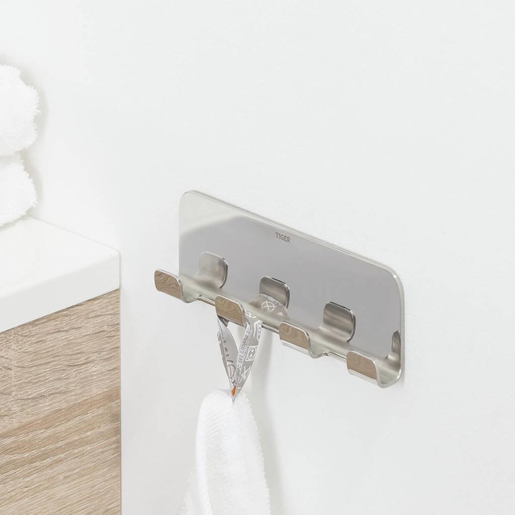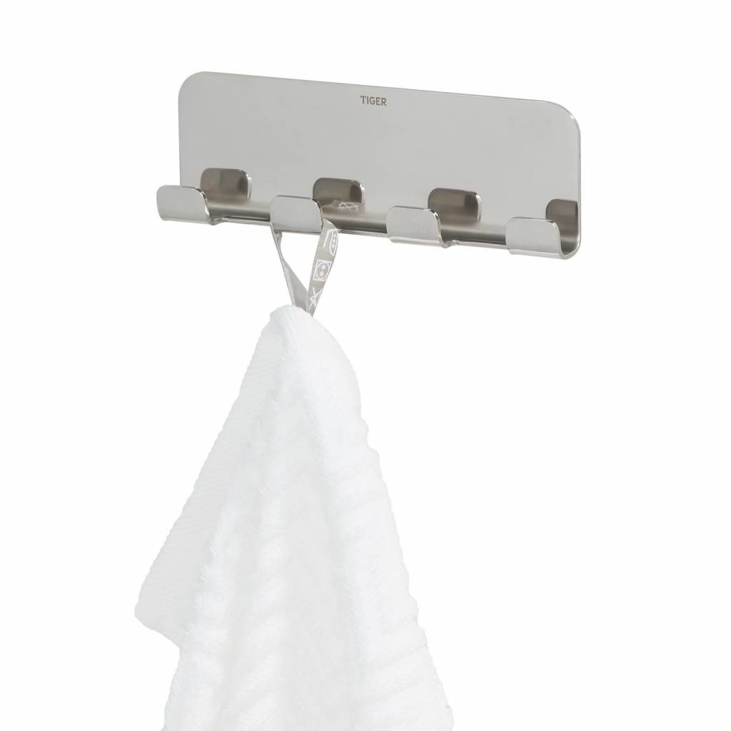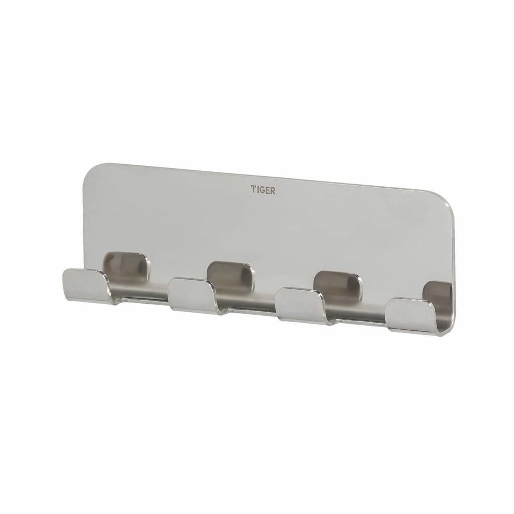 De multihaak uit de Colar serie van Tiger is uitgevoerd in gepolijst rvs. De haak is voorzien van een krachtige dubbelzijdige tape waardoor montage op iedere gladde, stevige ondergrond zeer eenvoudig is. De Colar serie bevat tevens een dubbele haak, maar ook een groot aantal aanvullende accessoires voor de badkamer en toiletruimte in dezelfde stijl.