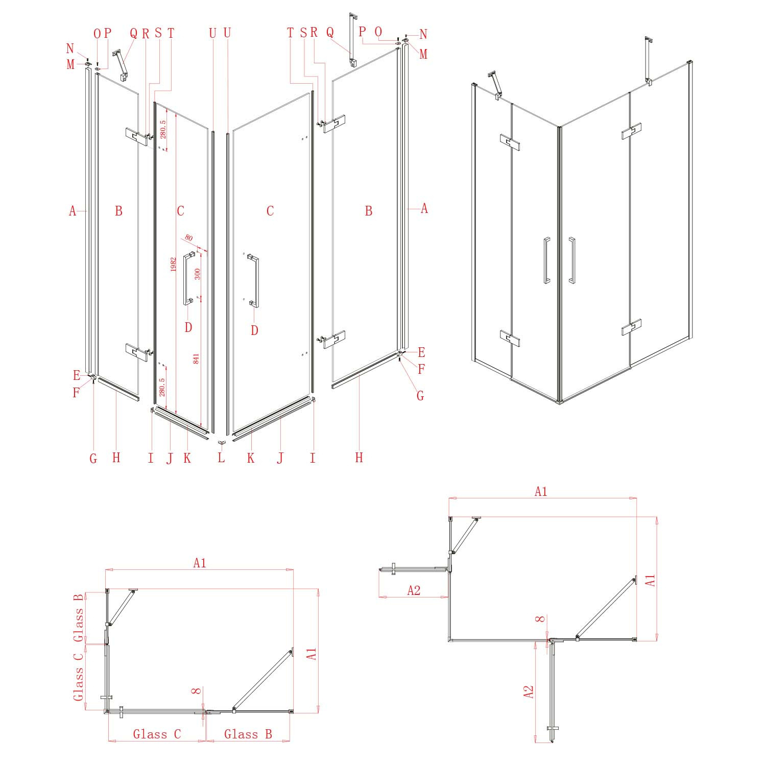 U kunt de douchedeur van 200 cm hoogte plaatsen met een het muurprofiel en stabilisatiestang. De deur is zowel links als rechtsom te plaatsen. De doorgang van de nisdeur als de klapdeur geopend is, is maar liefst 41 cm.