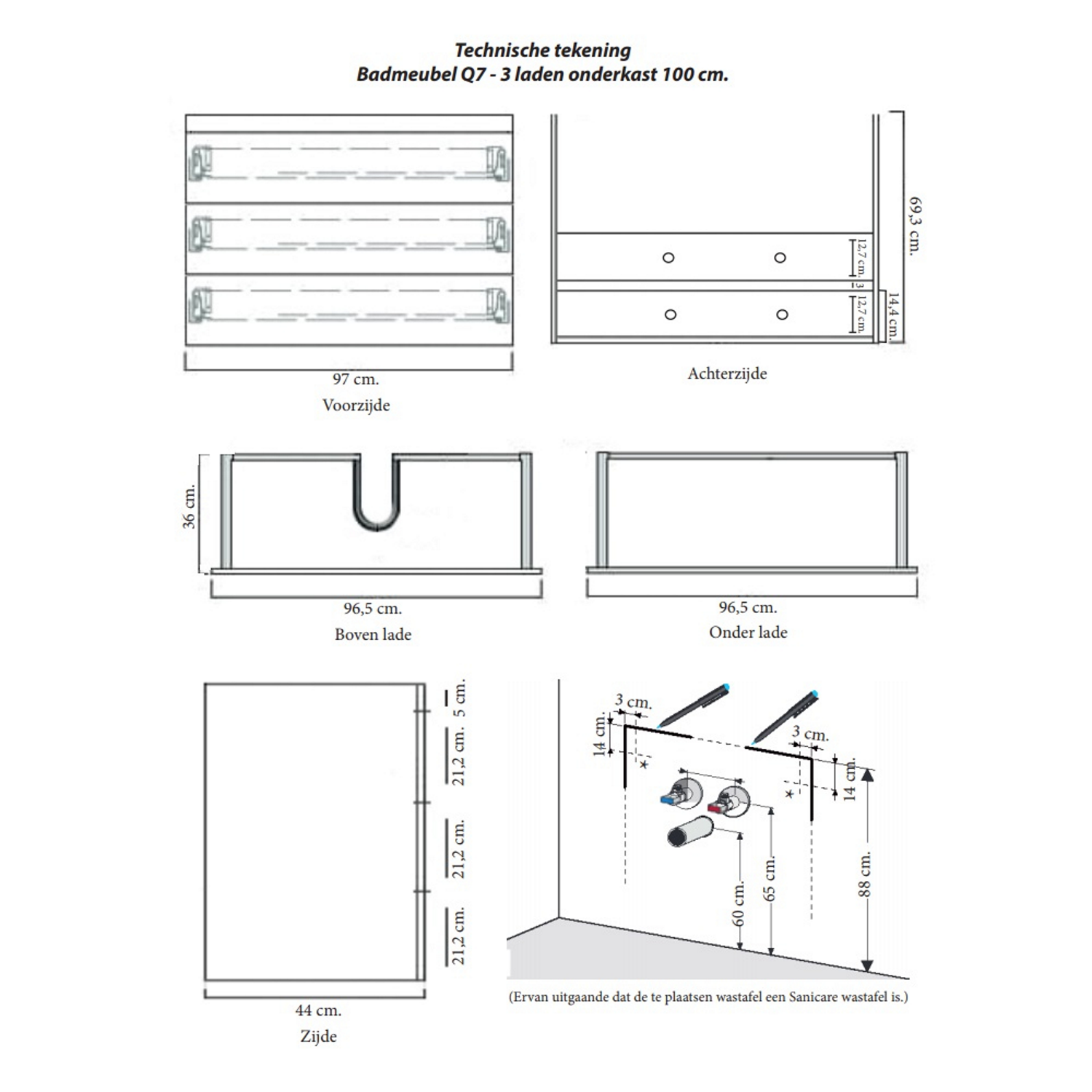 Deze onderbouwkast van het merk Sanicare past perfect in uw badkamer. De onderbouwkast beschikt over drie laden waar u gemakkelijk uw badkamerproducten in kwijt kunt. De drie laden zijn zelfsluitend en beschikken dan ook niet over een greep. Het product is verder voorzien van soft-closing Blum scharnieren die ervoor zorgen dat de laden zacht en geruisloos zullen sluiten bij gebruik.
