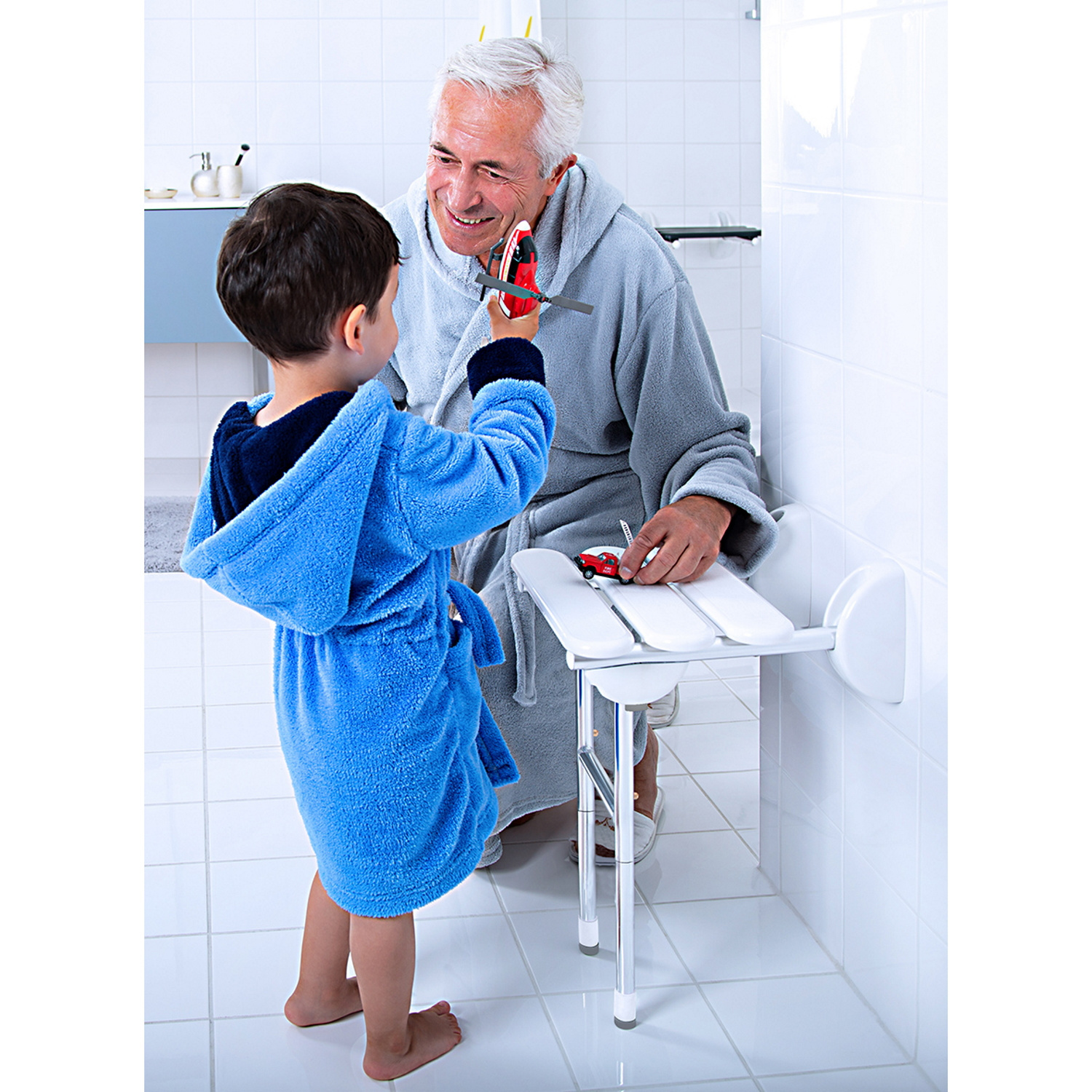 Geniet gemakkelijk van een douche dankzij het Ridder Pro douchezitje. Ideaal voor mensen met een verminderde mobiliteit. Combineer de Pro douchezitjes met deze ondersteuning en verhoog het draagvermogen van 130 kg naar max. 175 kg. De ondersteuning is in hoogte verstelbaar van 35 tot 51 cm en opklapbaar.